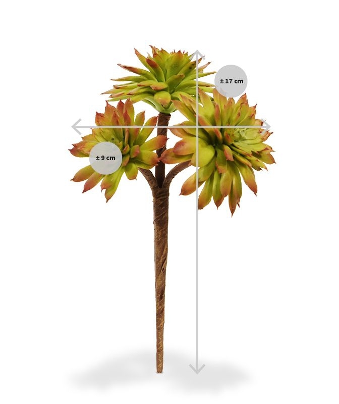 Che divertente aggiunta è questo mini ramo artificiale di Echeveria rossa! È straordinario che le foglie inferiori si affloscino, mentre quelle superiori sembrano voler risalire. E vedete il meraviglioso contrasto tra il verde fresco delle foglie e il rosso ca