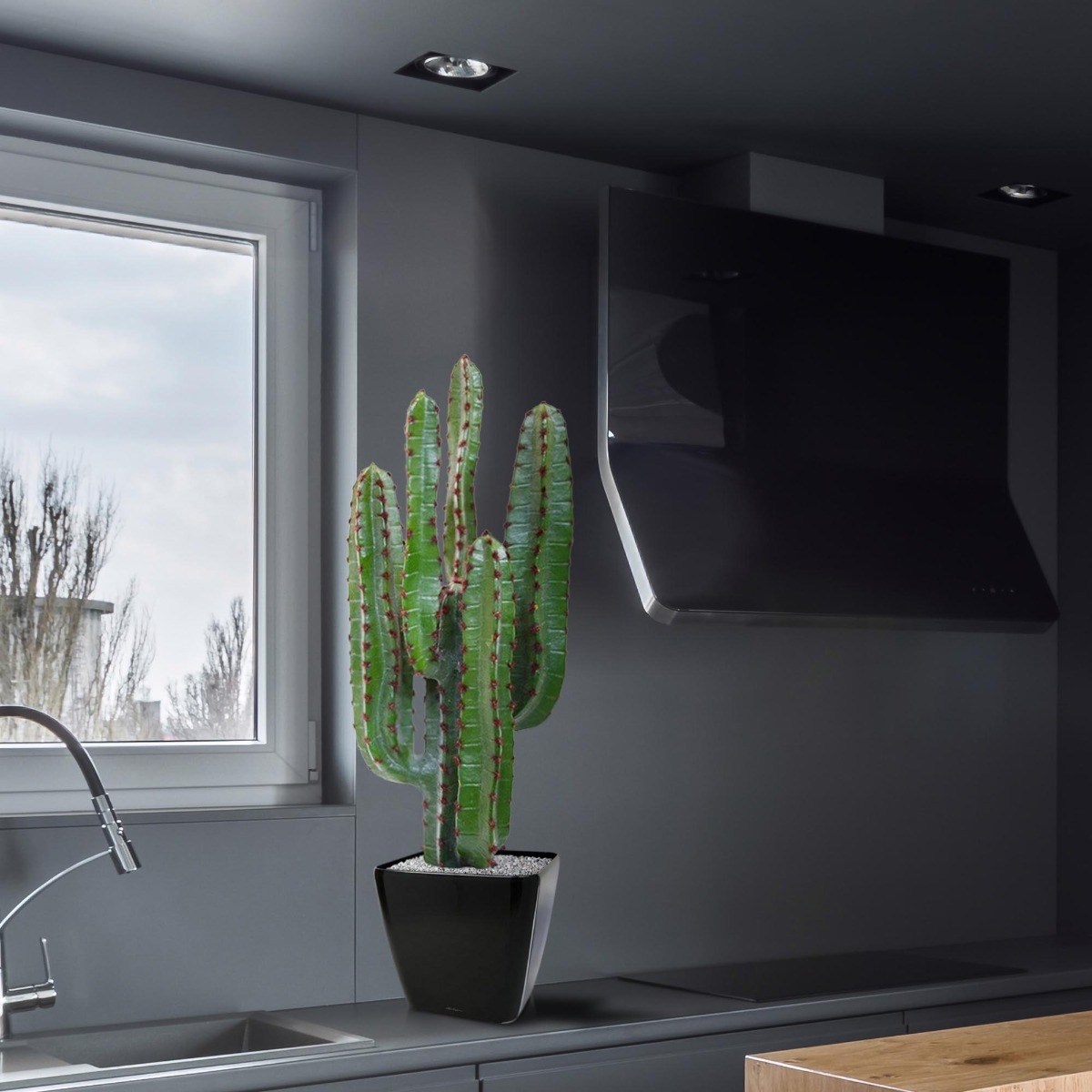 Tutti conosciamo questo cactus dai film western. Il cactus Euphorbia. Noto per la sua forma e per le enormi altezze che può raggiungere. In questa versione come cactus artistico, l'Euphorbia presenta 5 rami laterali di diverse altezze, tutti con file di spine
