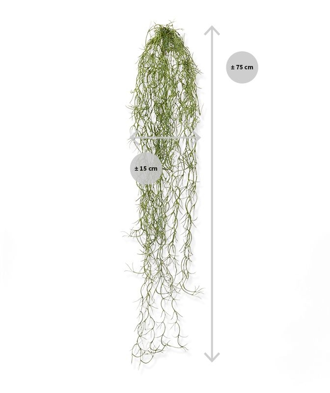 Conosciamo la Tillandsia in diverse forme. Ad esempio, è presente nel nostro assortimento come talea ma anche come pianta artificiale ricadente. Come pianta artificiale ricadente, i germogli di plastica sono cilindrici e ricadenti e hanno molti rami. È possibi