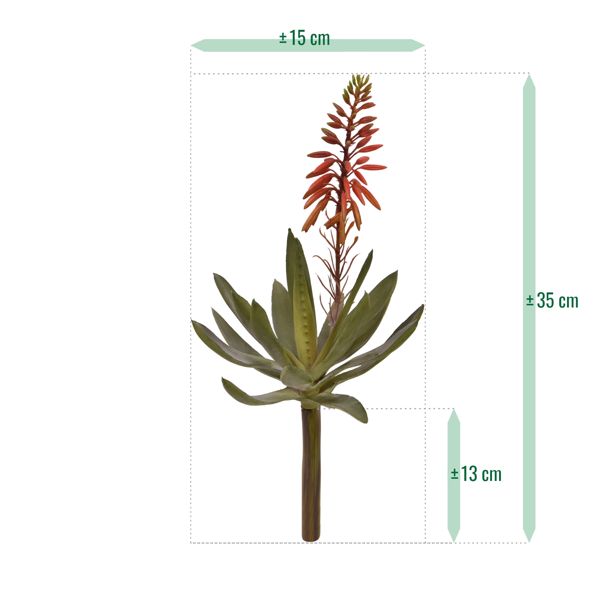 Anche voi amate l'Aloe Vera e i suoi effetti lenitivi? Ora godete di questi benefici in più con la pianta artificiale di Aloe Vera nel colore rosso! Non solo contiene le foglie spesse e carnose dell'Aloe Vera, ma ha anche un bellissimo fiore rosso sul lato del