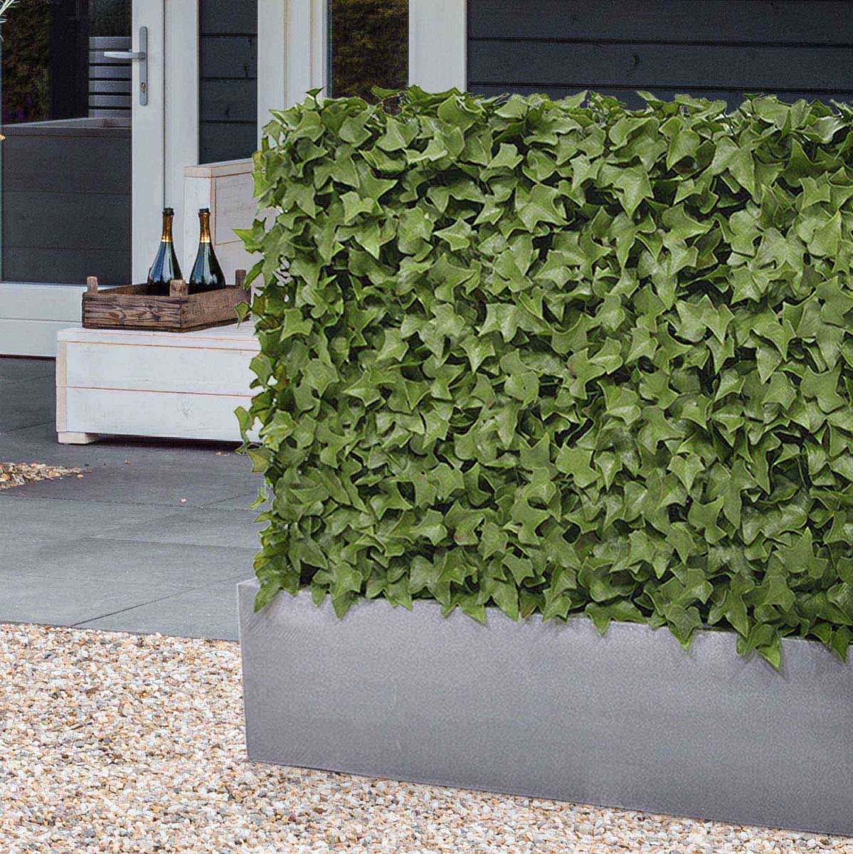 Questa siepe di Hedera artificiale 55x80 cm è realizzata in PVC di alta qualità. Nelle foglie di plastica di questa siepe artificiale è incorporato uno speciale protettore UV che protegge la siepe dallo scolorimento per 8 anni. Questo rende la siepe artificial