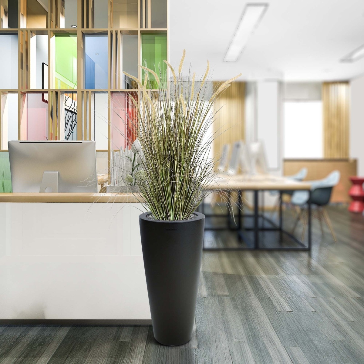 Siete alla ricerca di una bellezza sontuosa che vi permetta di diffonderla in lungo e in largo? Una pianta artificiale decorativa che accolga i vostri visitatori, ma che difficilmente dovrete curare e mantenere? Allora non lasciatevi sfuggire questa bellissima pianta d'erba pennisetum artificiale d'atmosfera!