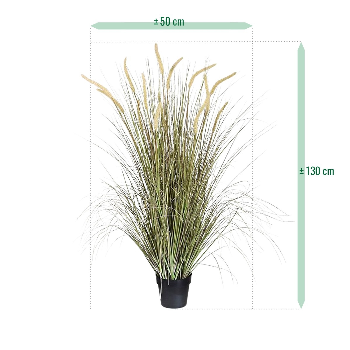 Venite con noi, gustosi e ricchi di allegria! Perché con il suo aspetto eccessivo e con gli occhi spalancati, questa pianta d'erba artificiale Pennisetum di 130 cm d'altezza è un bell'aspetto per qualsiasi interno di casa, ufficio o qualsiasi altro luogo. Sare