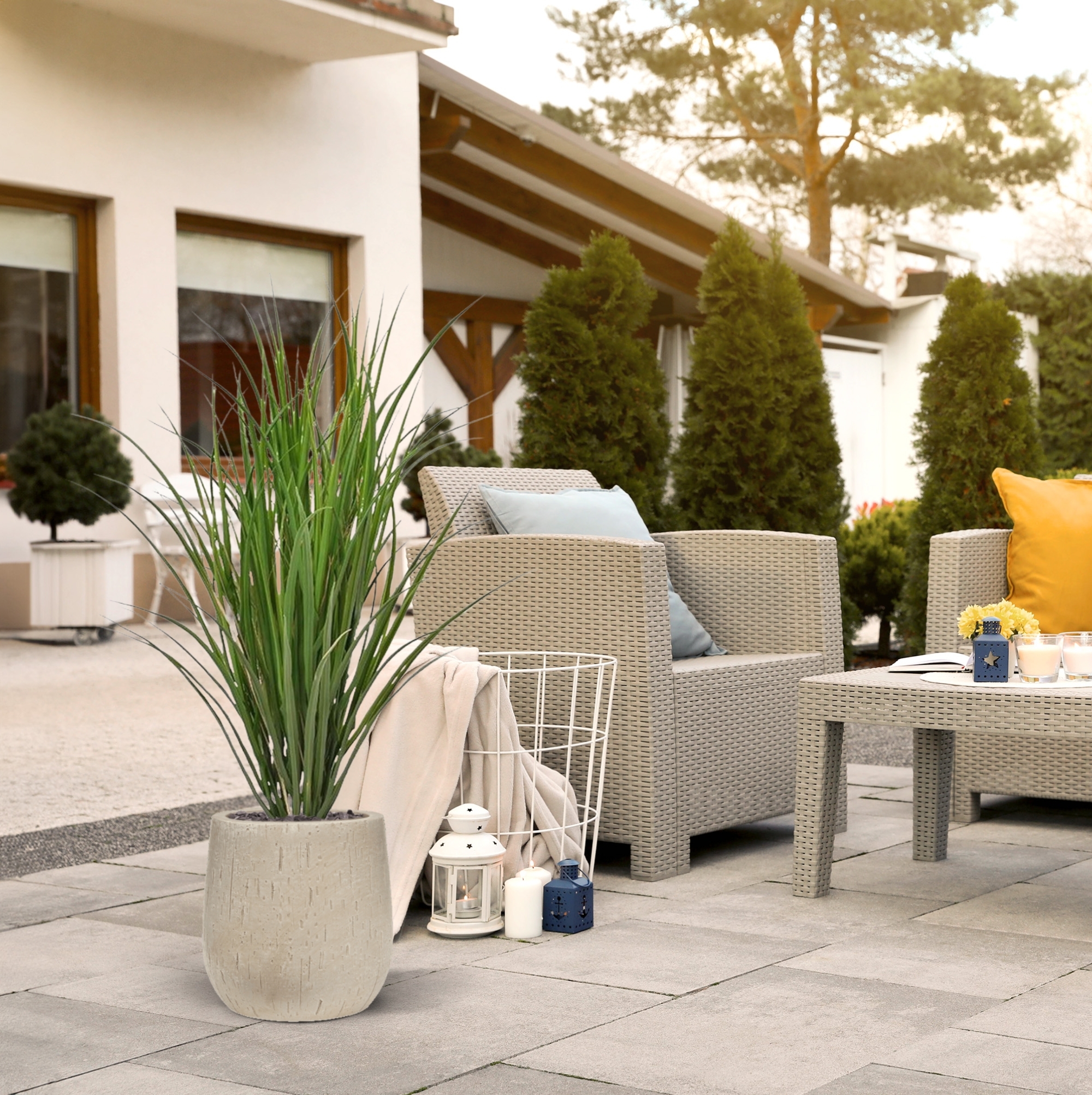 Date un'occhiata a questa bellissima canna artificiale ondulata, naturale e resistente ai raggi UV (Miscanthus). Con la sua variegata tavolozza di colori verdi freschi e i culmi simili a paglia, la pianta artificiale è quasi indistinguibile da quella vera. Gra