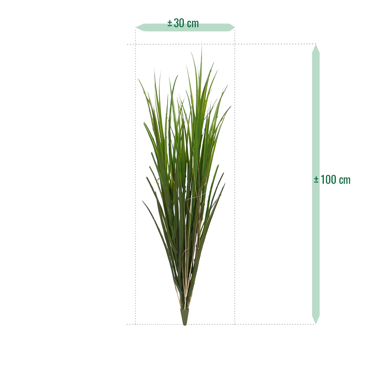 Porta lo splendore naturale degli ambienti esterni all'interno con la nostra Art Reed Grass Deluxe in una vibrante tonalità di verde. Con un'altezza impressionante di 105 cm e una diffusione rigogliosa di 30 cm, questa pianta artificiale aggiunge un tocco di f