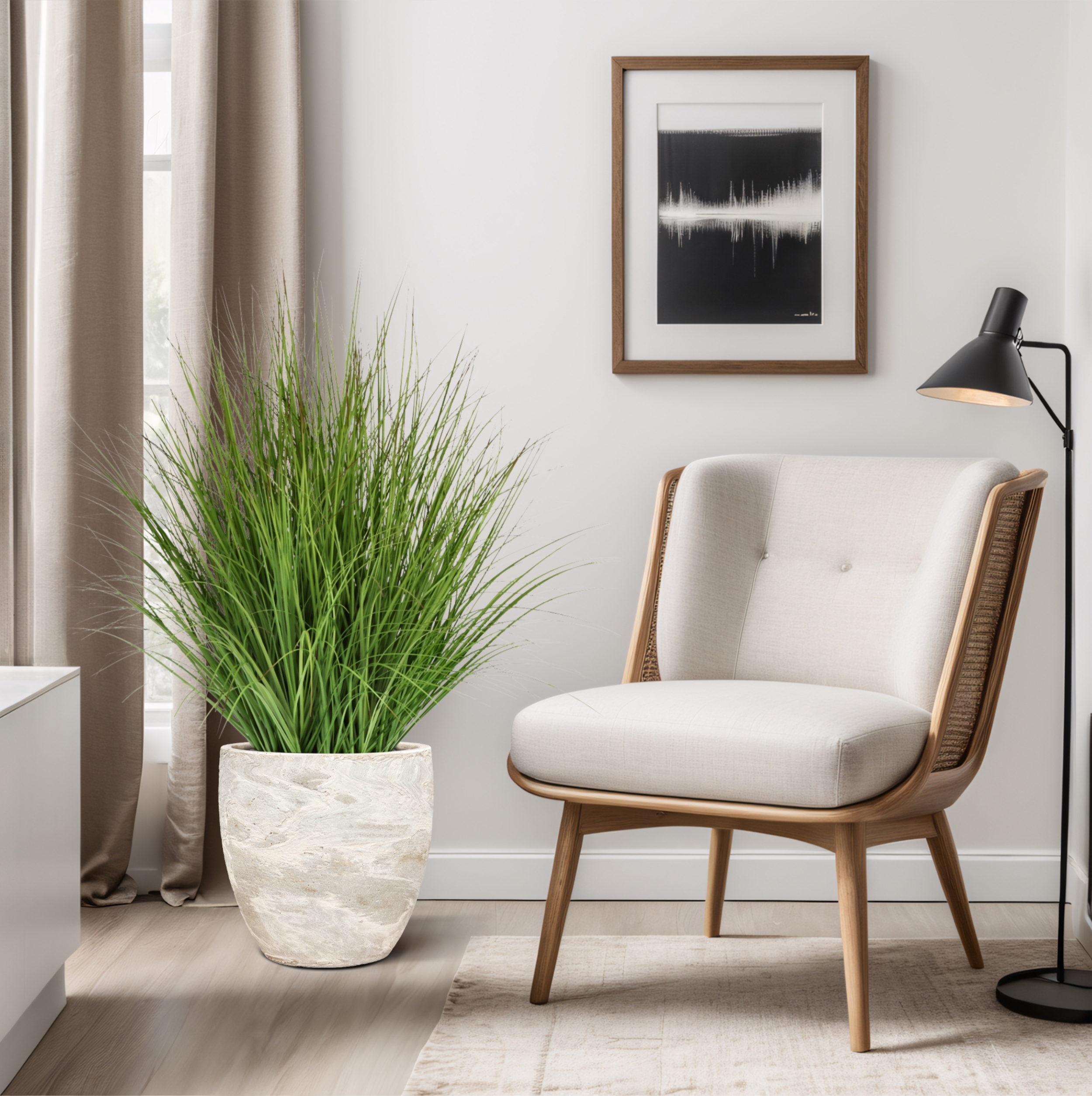 La Pianta di erba artificiale XL 90cm verde è un elemento decorativo di grande impatto che dona immediatamente un aspetto fresco e naturale agli ambienti. Questa pianta folta presenta fili lunghi e sottili in diverse tonalità di verde, per un effetto realistico e armonioso. Con una larghezza di circa 90 cm, questa pianta di erba artificiale crea volume ed equilibrio ed è ideale per interni moderni, scandinavi o industriali. Posizionala in soggiorno, all’ingresso, in ufficio o in ambienti hospitality per un tocco verde senza manutenzione.