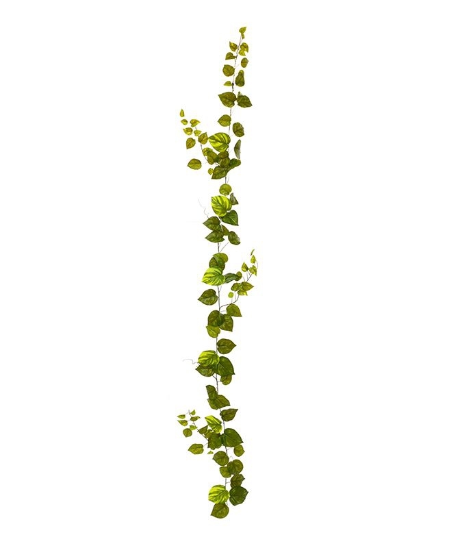 Vedete il disegno fogliare particolarmente raffinato, sfumato e dettagliato di questo Pothos Guirlande variegato? E sentite le foglie in rilievo, morbide come la seta e rivolte verso il sole..... proprio come la pianta vera! Un'aggiunta unica alla vostra casa,