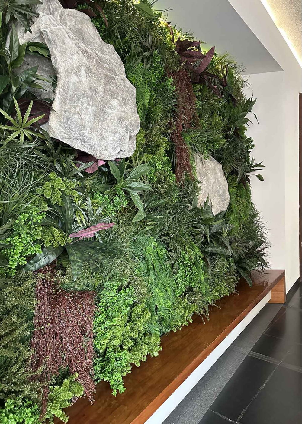 Spettacolari pannelli di Giardino Verticale ARTIFICIALE "LUX con in piu ROCCE FINTE che sembrano vere" - Pannelli Assemblabili per creazione di pareti scenografiche di Giardino Verticale Artificiale con foglie di altissimo livello sia per INTERNO che per ESTERNO. VEDI A LATO ALCUNE DELLE NOSTRE FOTO !!