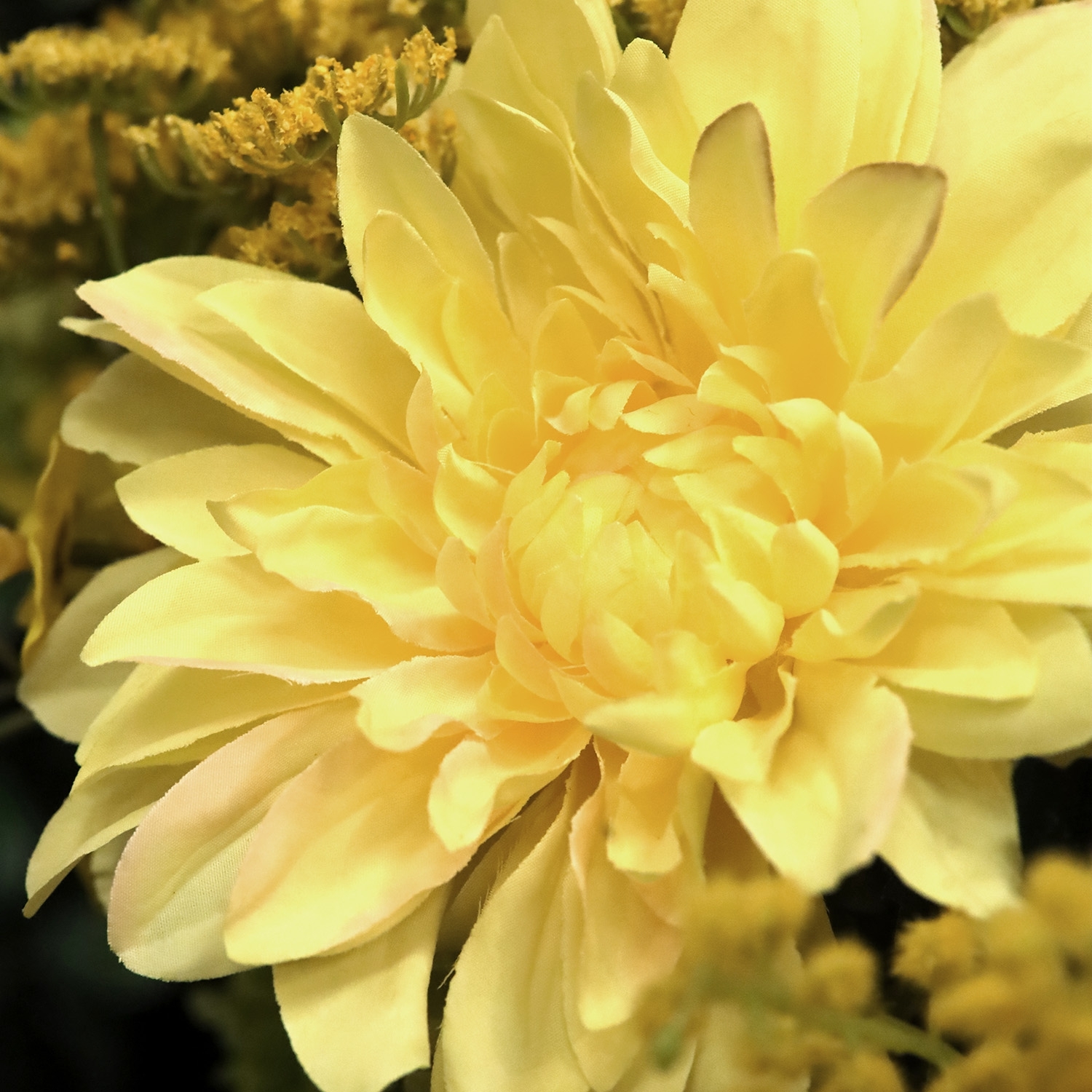 Il Mazzo di Fiori Artificiali Chantal Lucca è una composizione fresca e contemporanea di fiori artificiali, con un’altezza e una larghezza di 55 cm. Questo luminoso mazzo nei toni del giallo con delicati accenti arancioni dona immediatamente un’atmosfera accog