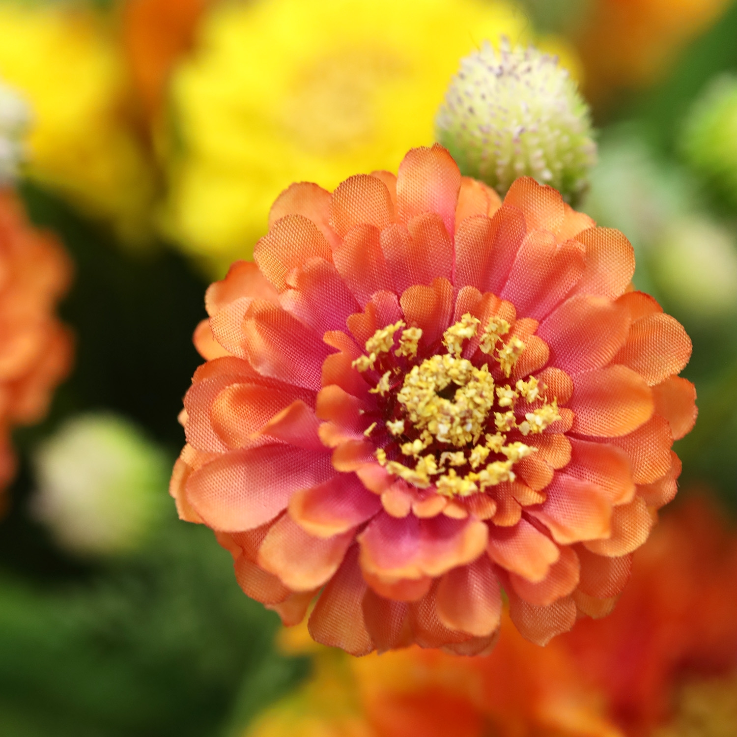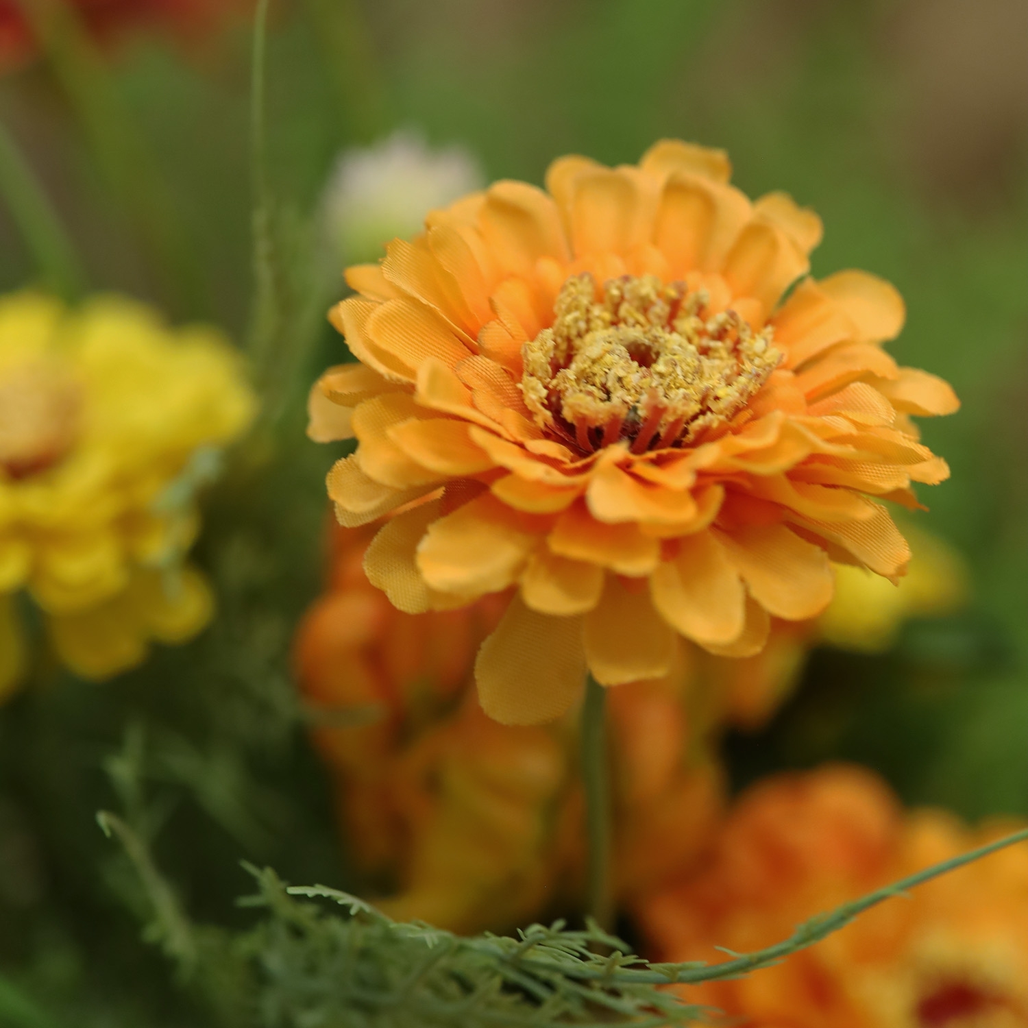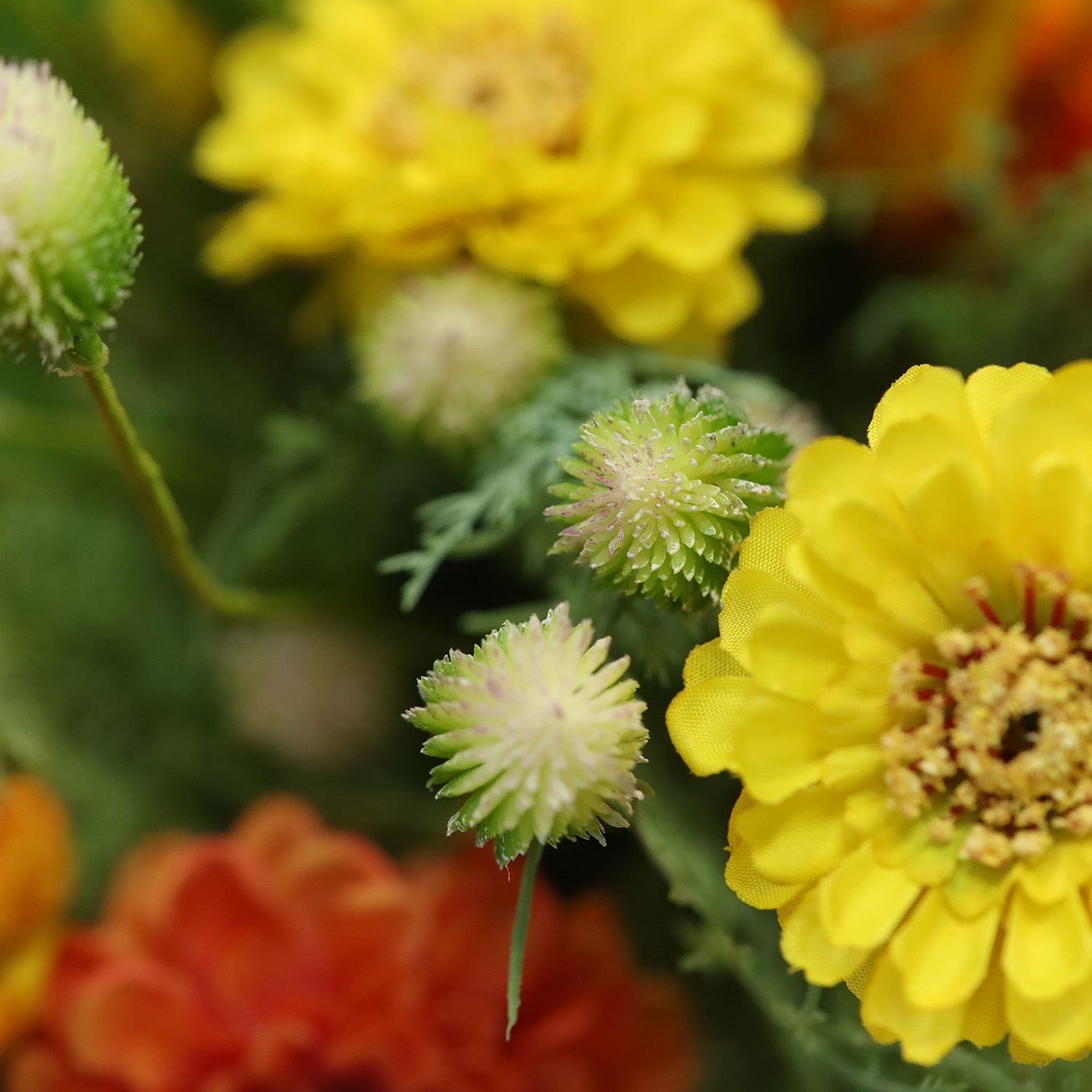Il Bouquet Artificiale Inge Dordrecht è una composizione calda e vivace di fiori artificiali con un’altezza e larghezza di 35 cm. Questo bouquet artificiale compatto nei toni arancioni e gialli dona immediatamente energia e luminosità all’ambiente. La combinaz