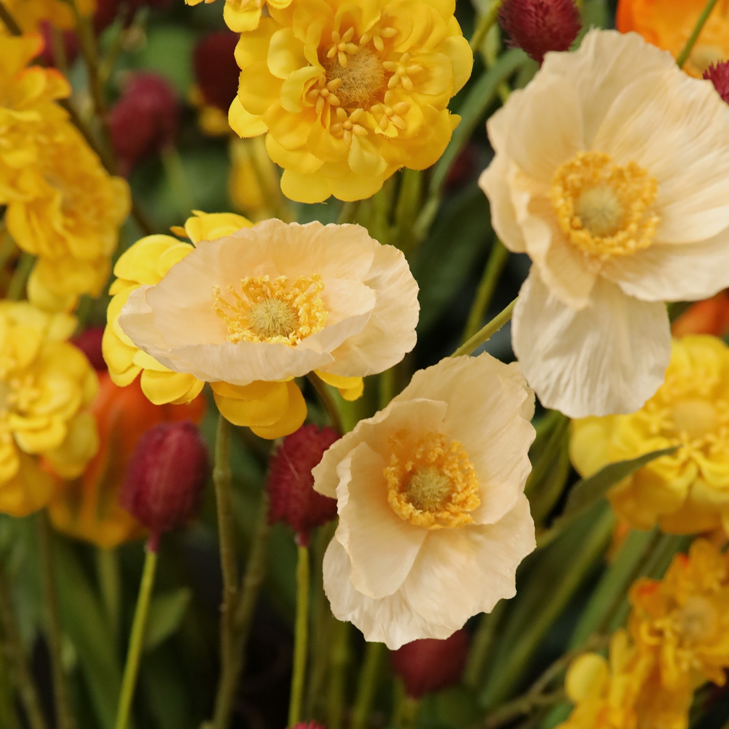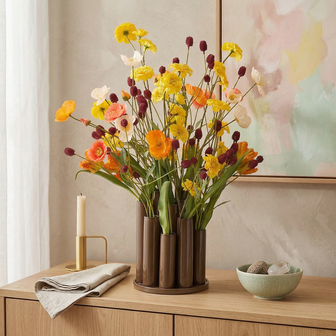 Scopri la nostra collezione di mazzi di fiori artificiali e scegli la composizione perfetta per valorizzare il tuo ambiente.