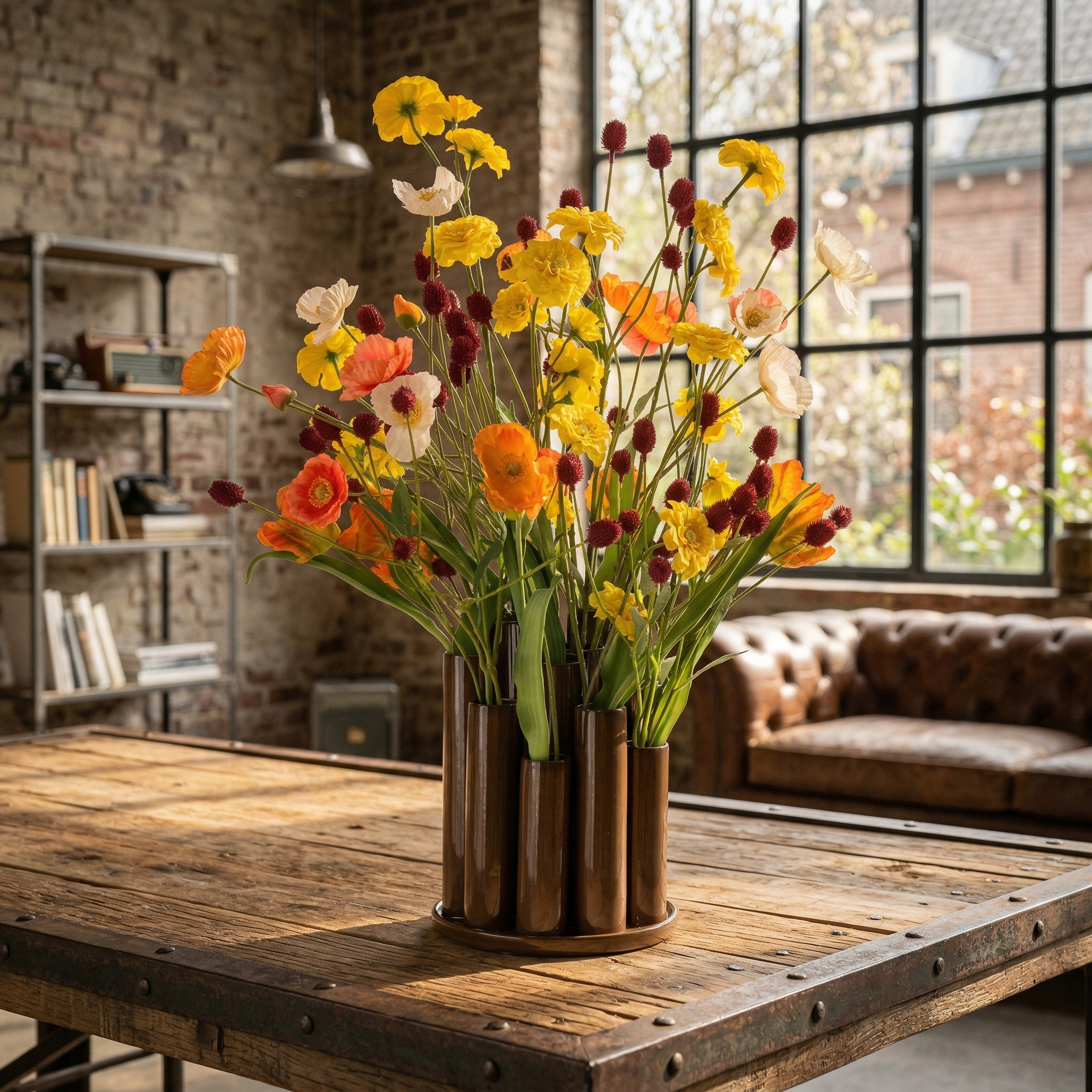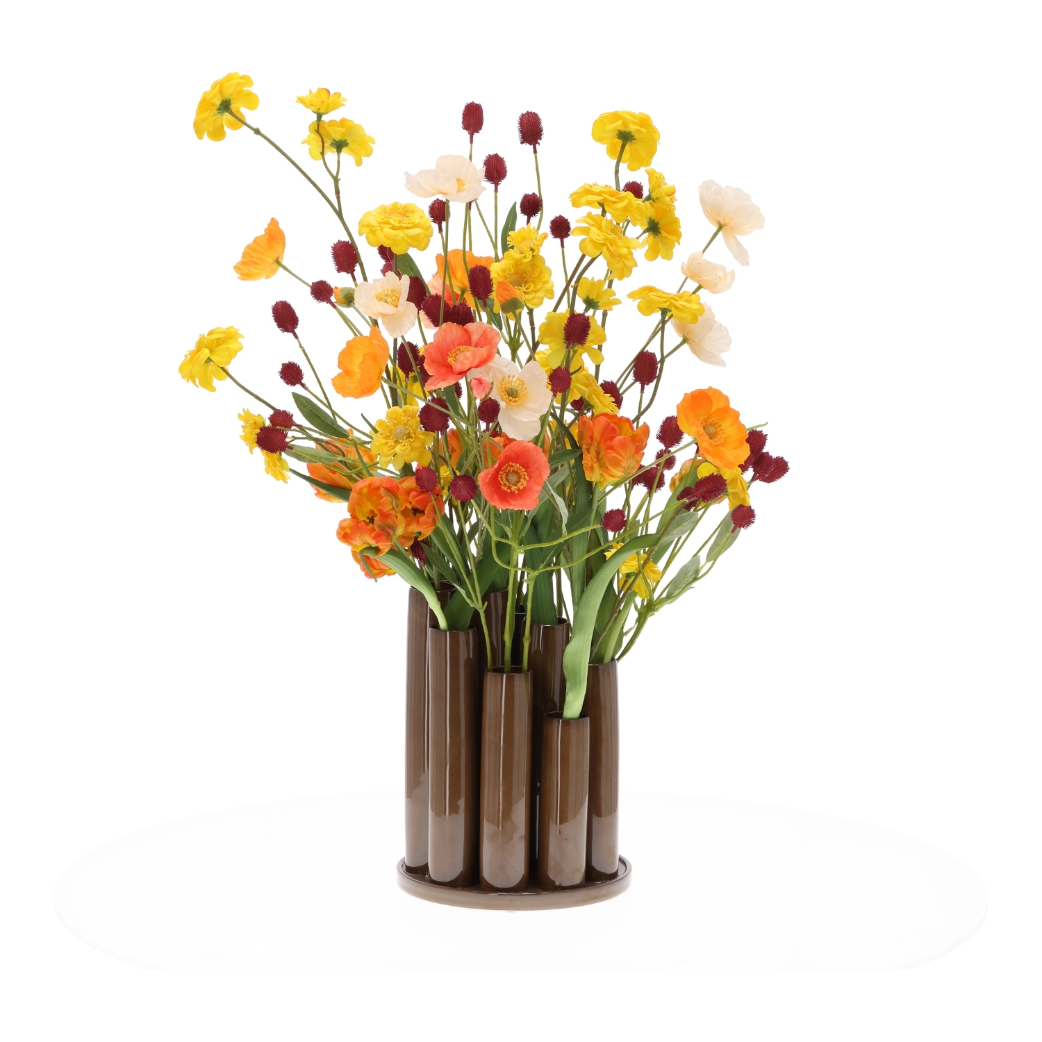 I nostri fioristi esperti hanno realizzato questo mazzo di fiori artificiali con grande attenzione all’equilibrio tra colori e altezze. I fiori di questo mazzo di fiori in seta sono realizzati in seta artificiale, così mantengono la loro forma e il loro aspetto realistico nel tempo. Potrai godere di una fioritura rigogliosa tutto l’anno senza alcuna manutenzione. Grazie alle sue dimensioni generose, è ideale su un tavolo da pranzo, una credenza o all’ingresso di casa. Si adatta perfettamente anche a una reception in ufficio o in un ristorante. Il bouquet viene fornito completo del vaso Twisted Tube, per un insieme decorativo pronto da posizionare.