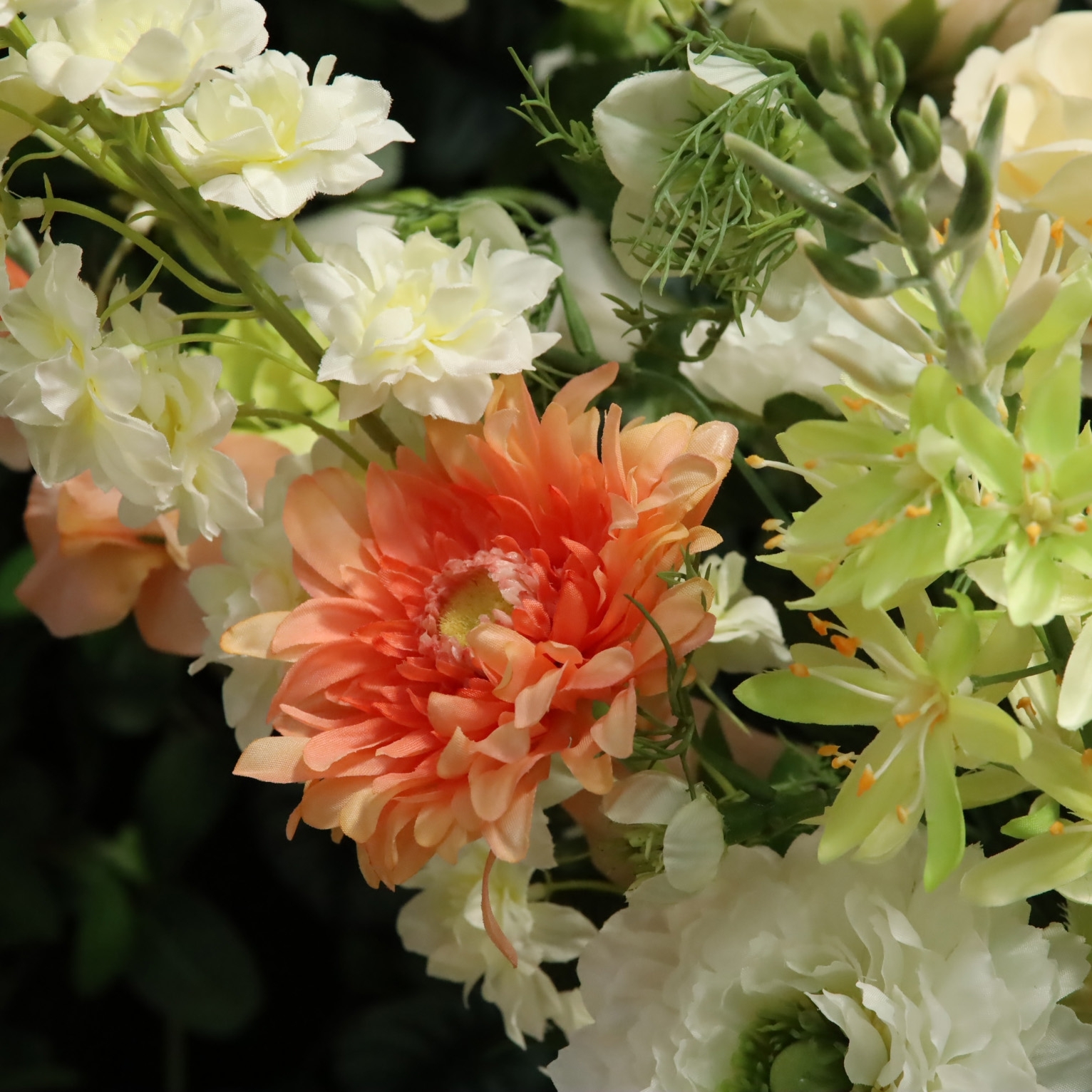 Il Mazzo di Fiori Artificiali Legato a Mano Alexia Lucerna 65cm è un elegante mazzo artificiale in una delicata tonalità salmone. Realizzato a mano da fioristi esperti, racchiude una raffinata combinazione di rose, campanule e delphinium. La composizione armon