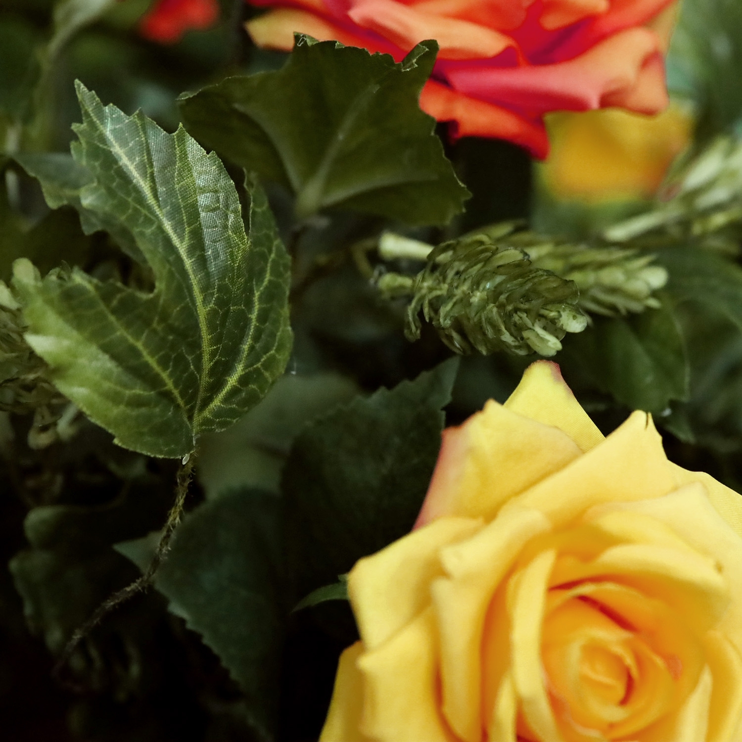 Il bouquet artificiale legato a mano Julie Verona - Arancio/Giallo è un bouquet allegro e colorato che illuminerà immediatamente qualsiasi stanza della tua casa. Con un'altezza di 40 cm e una larghezza di 40 cm, questo bouquet aggiunge un tocco gioioso a qualsiasi spazio. Il bouquet presenta una bellissima miscela di fiori arancioni e gialli, tra cui la ramo di rosa arancio, ramo di rosa gialla e il ramo di hop artificiale. Insieme, questi fiori creano un'atmosfera vivace e calda, ideale per portare una sensazione accogliente e casalinga nel tuo interno.