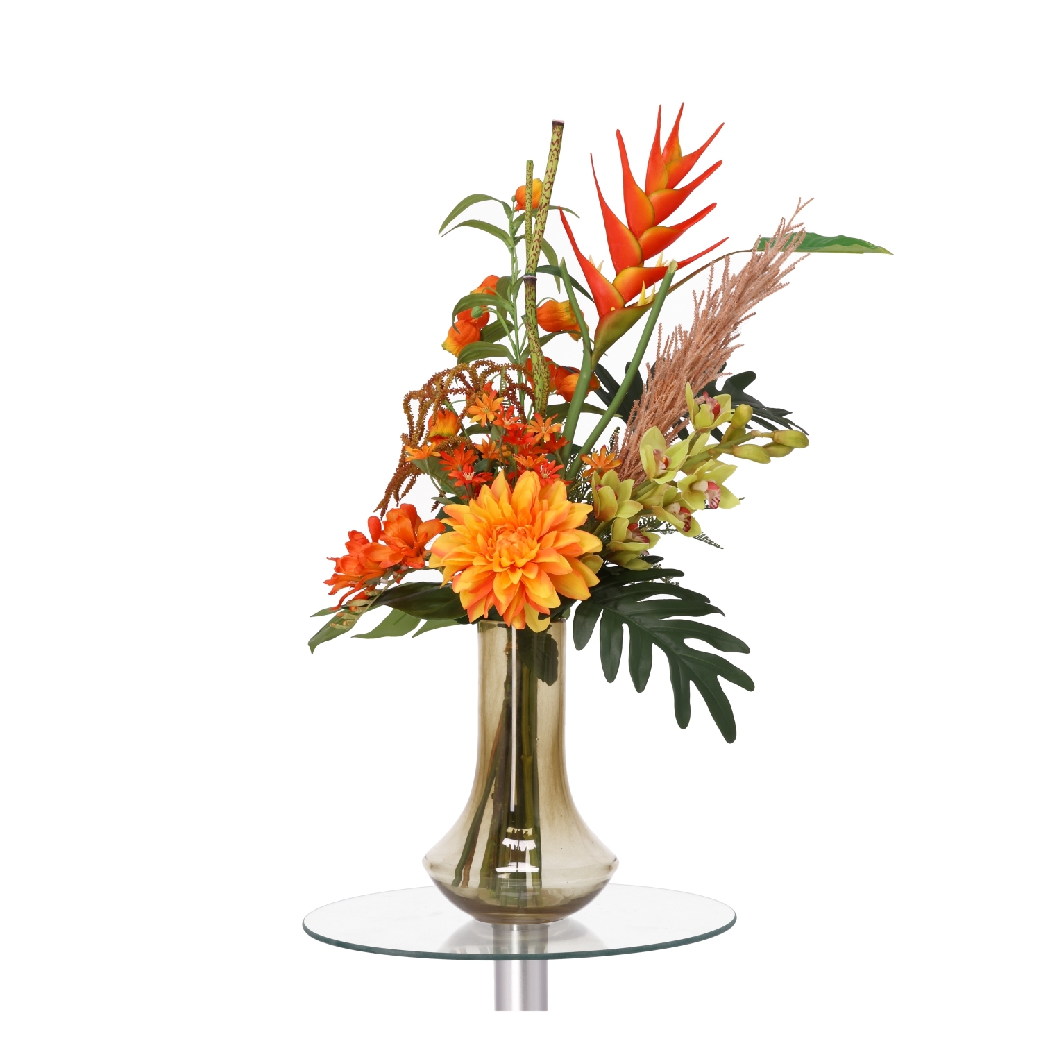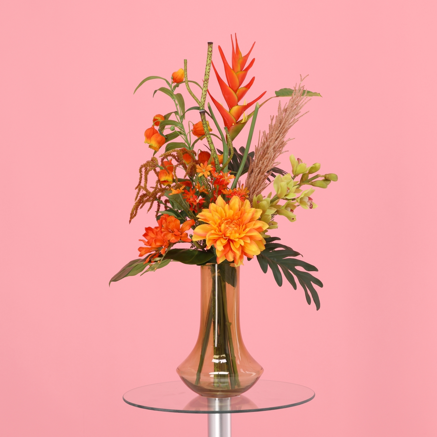 Il Mazzo di Fiori Artificiali Legato a Mano Oriana Palermo, alto 80 cm e largo 45 cm, è una composizione lussuosa di fiori artificiali nei caldi toni arancioni. Creato con cura da esperti fioristi, questo mazzo artificiale trasmette eleganza e naturalezza, diventando un complemento senza tempo per qualsiasi ambiente. La finitura realistica e i colori vivaci lo rendono un vero punto focale, perfetto per tavoli da pranzo, credenze, tavolini o ingressi. Nota: il vaso mostrato (Vaso Zzing Tony 28x18 cm – giallo oliva) non è incluso.