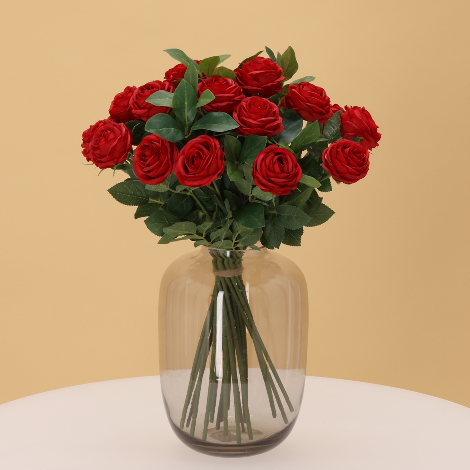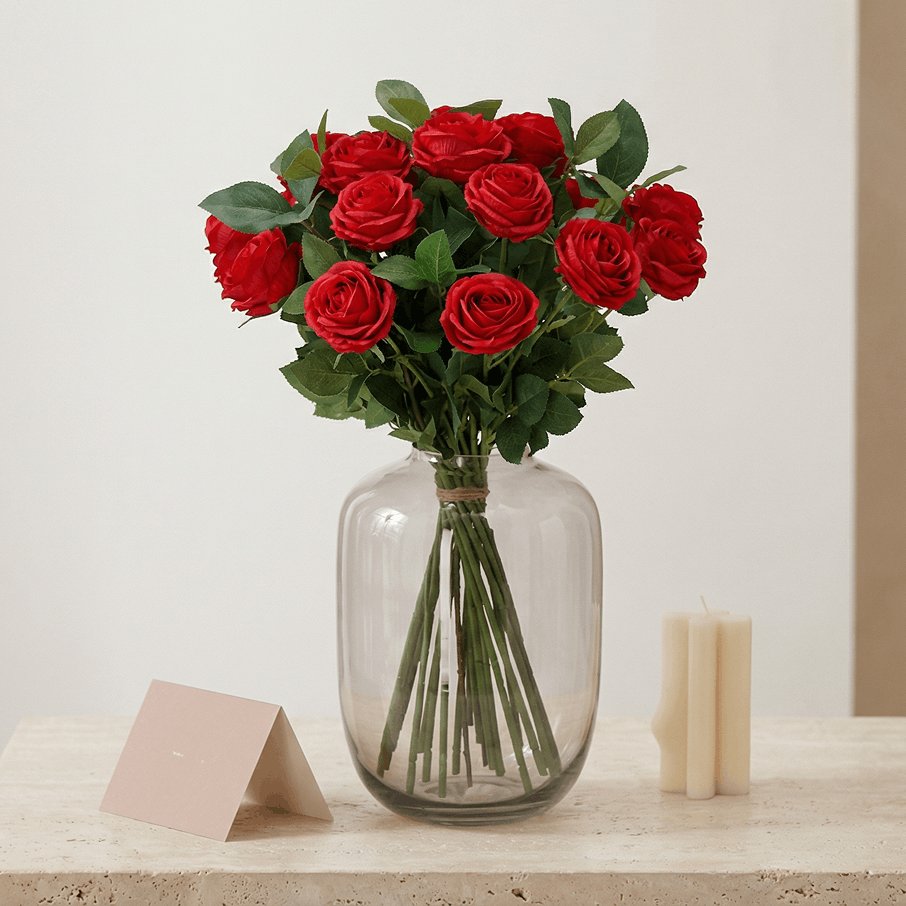 Con questo mazzo artificiale legato a mano scegli un’atmosfera duratura senza manutenzione. Non richiede acqua né cure e resta sempre in perfette condizioni. Ideale per chi desidera fiori dall’aspetto curato e professionale.