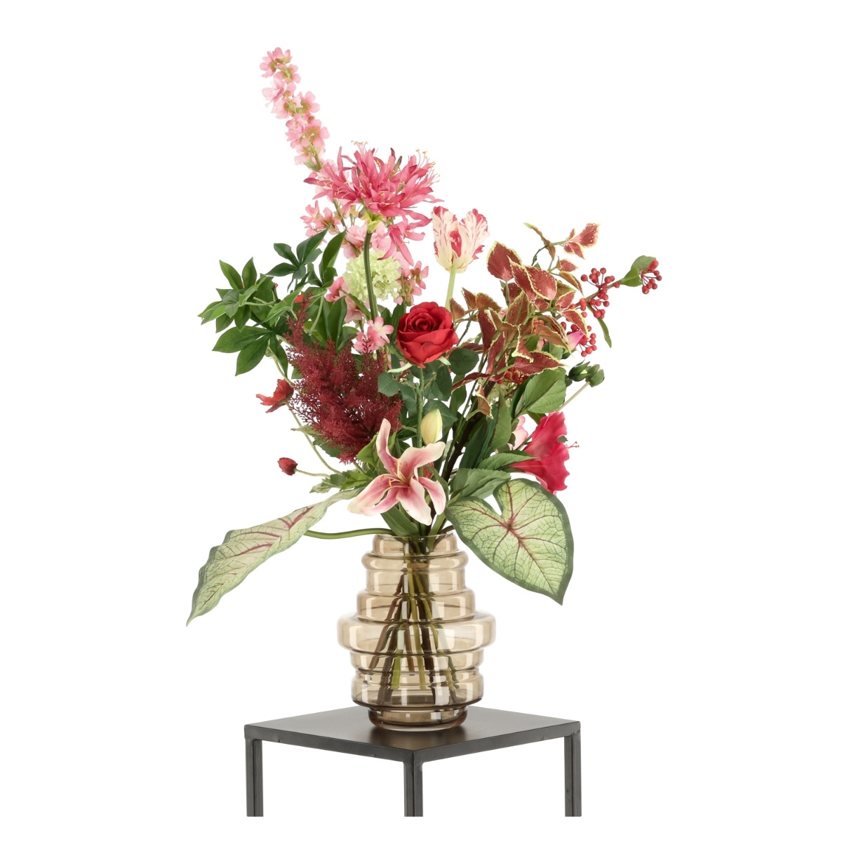 Il Juliette Anversa è un bellissimo bouquet d'arte con colori rosa e rossi. La combinazione di fiori delicati crea un aspetto elegante con un tocco caldo e rilassante. L'altezza totale è di 80 centimetri e la larghezza è di 55 centimetri. L'altezza dalla parte superiore del vaso alla parte superiore del bouquet è di 55 centimetri.