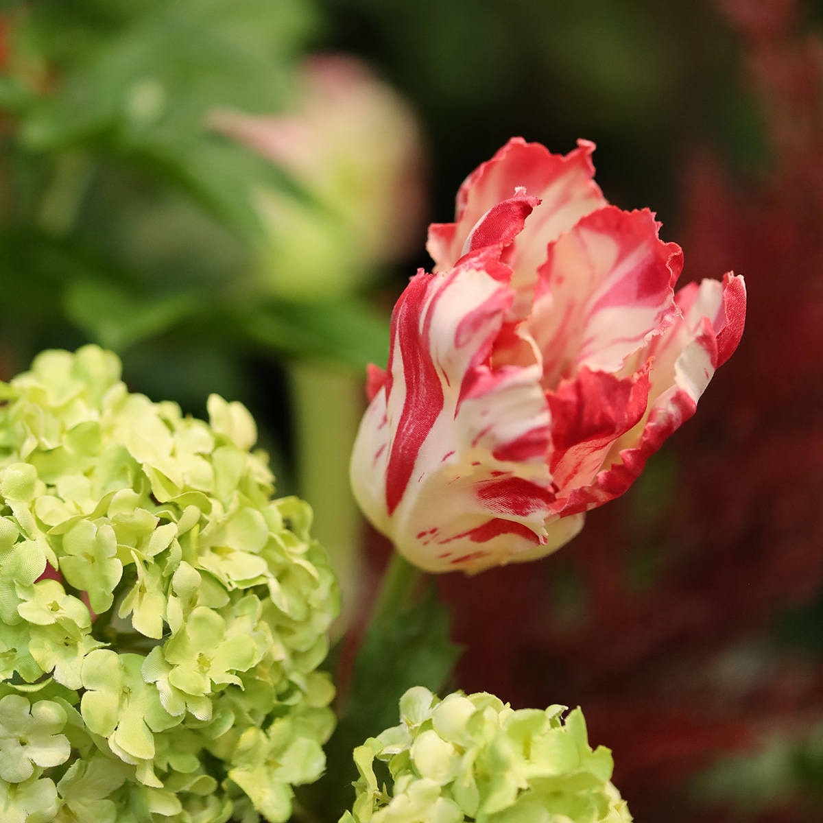 Immergi il tuo interno in una bellezza durevole con il lussuoso bouquet d'arte Juliette Anversa di BM™ Luxury. Questo incantevole bouquet è un capolavoro, composto dai più bei fiori artificiali - dai rametti di ibisco esotico alle tulipani colorate, dai papave