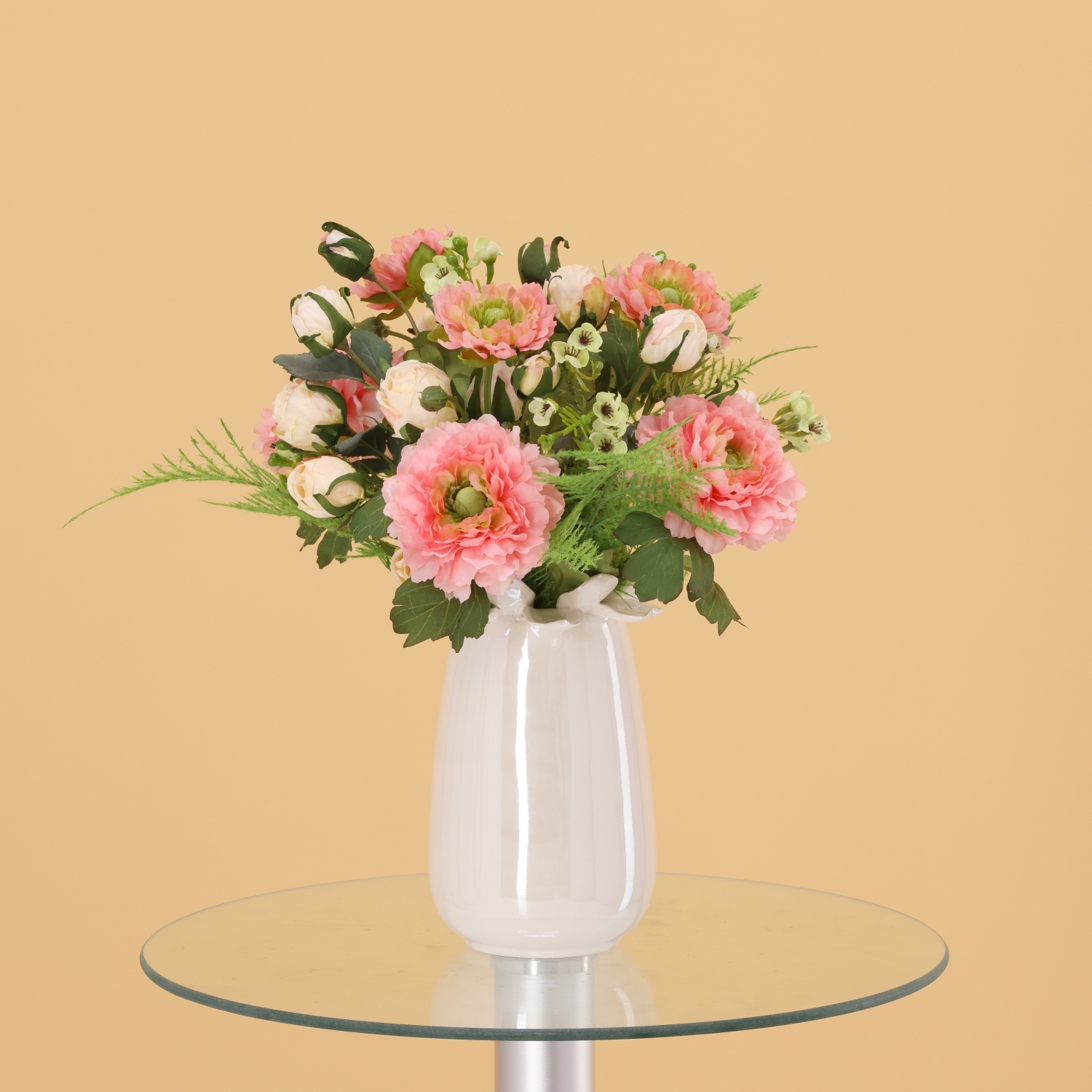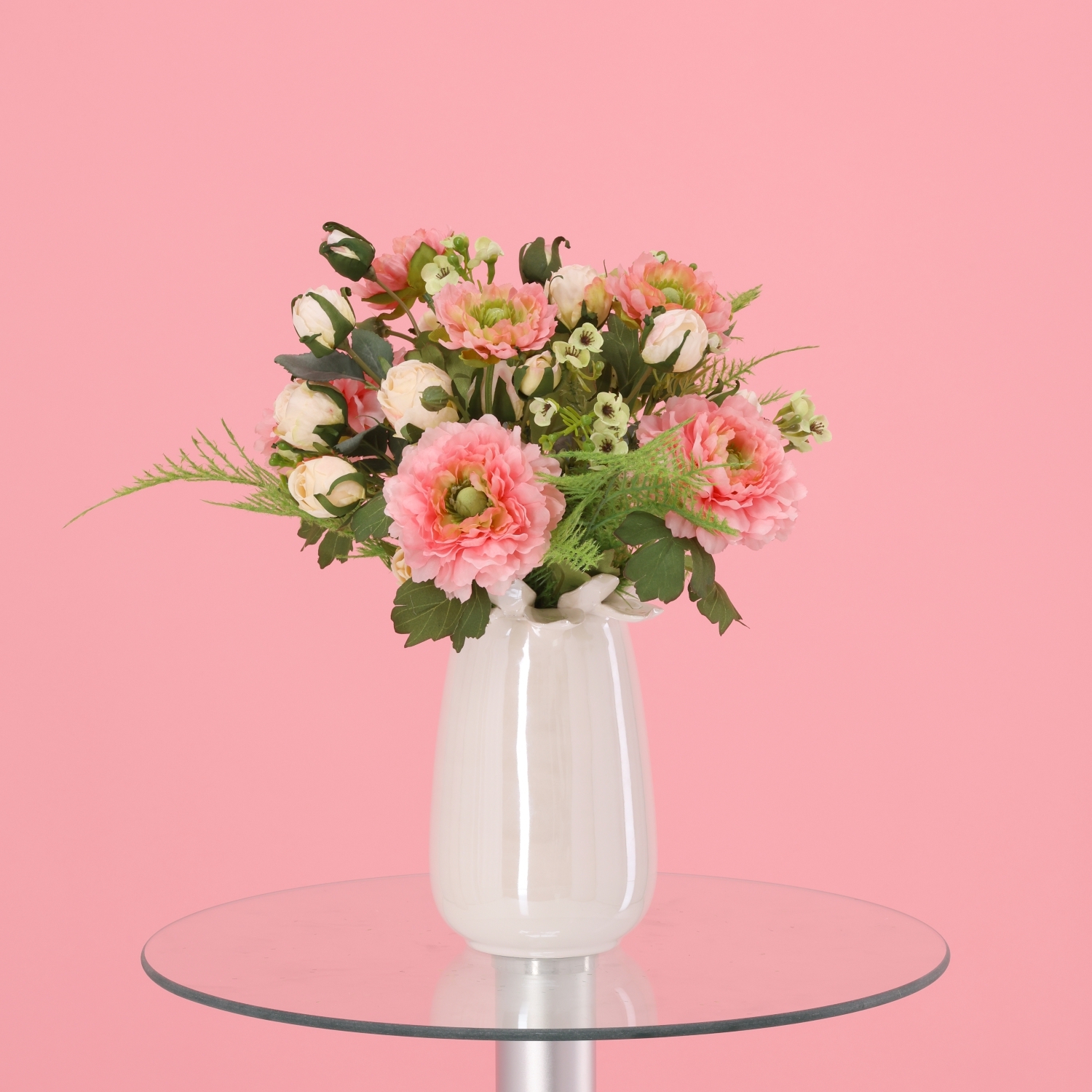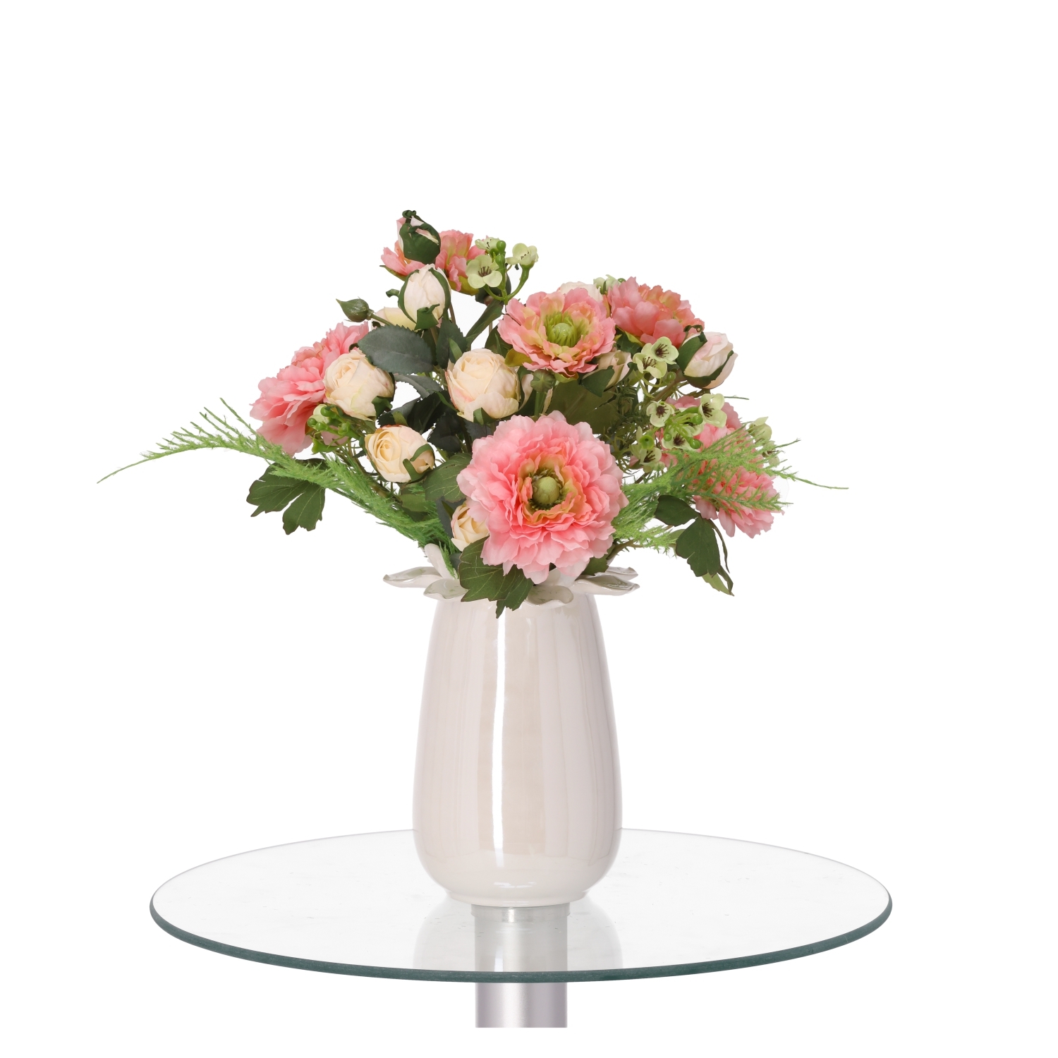 Il Mazzo di Fiori Artificiali Legato a Mano Frieda Bern, alto 35 cm e largo 30 cm, è una composizione affascinante e lussuosa di fiori artificiali in delicate tonalità rosa. Questo mazzo artificiale emana raffinatezza ed eleganza, accuratamente realizzato da esperti fioristi. Grazie alle sue dimensioni compatte, è particolarmente adatto per tavolini, credenze o come tocco decorativo in una hall o in un ufficio. Con la sua finitura realistica e i colori freschi, dona facilmente calore e stile a qualsiasi ambiente. Nota: il Vaso Madelief porcellana 14x20 cm bianco mostrato non è incluso.
