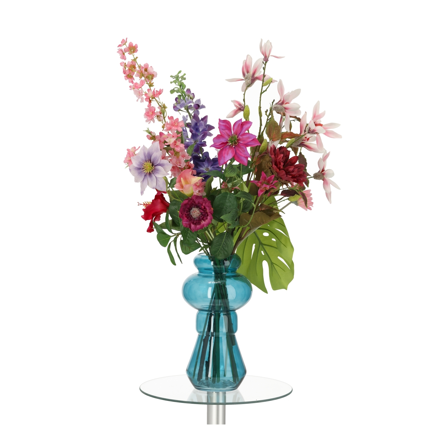 Fai risplendere il tuo interno con la bellezza naturale incantevole del bouquet Heather Glasgow di BM™ Luxury. Questo elegante bouquet floreale artificiale è una composizione attentamente selezionata di fiori e foglie artistici, tra cui la maestosa foglia di Monstera, il grazioso fiore di Calla, il ramo esotico di Ibisco, il raffinato ramo di Clematis, il delicato ramo di Agrifoglio giapponese, il magico ramo di Magnolia e il delicato ramo di fiori di ciliegio.