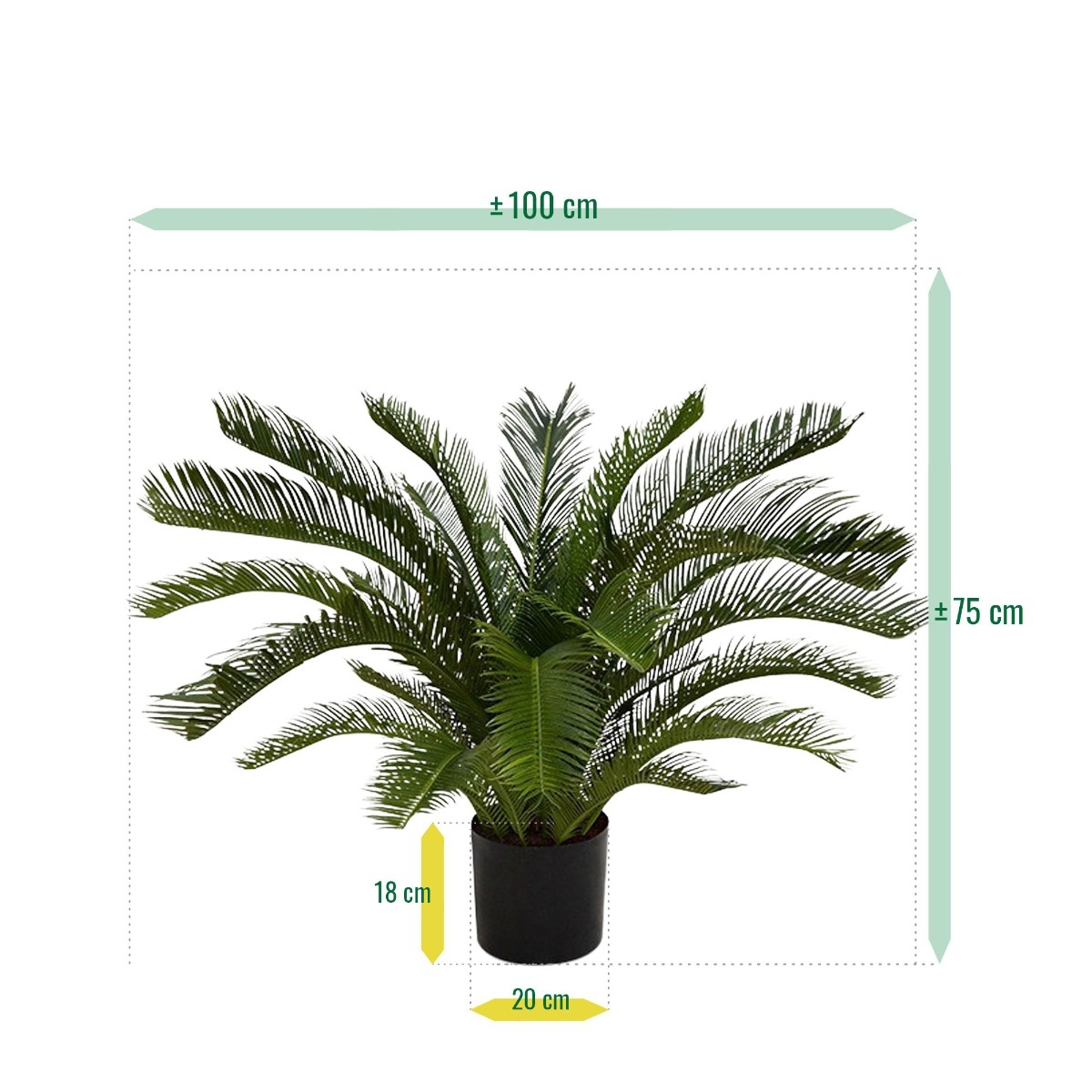 Questa palma Cycas artificiale resistente ai raggi UV non solo ha un aspetto molto reale, ma le sue foglie in plastica dura si sentono proprio come le vere palme Cycas! La Cycas realistica è realizzata con materiali di alta qualità e resistenti ai raggi UV e h