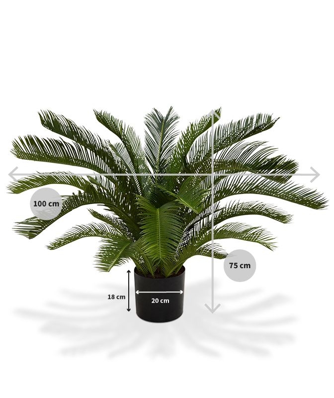Questa palma Cycas artificiale non solo ha un aspetto molto reale, ma le sue foglie in plastica dura si sentono proprio come le vere palme Cycas! La Cycas realistica è realizzata con materiali di alta qualità e ha un'altezza di circa 70-80 cm. Il diametro dell