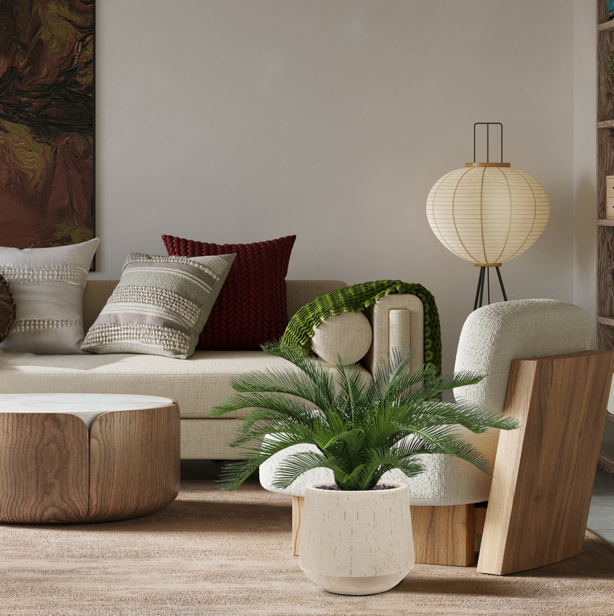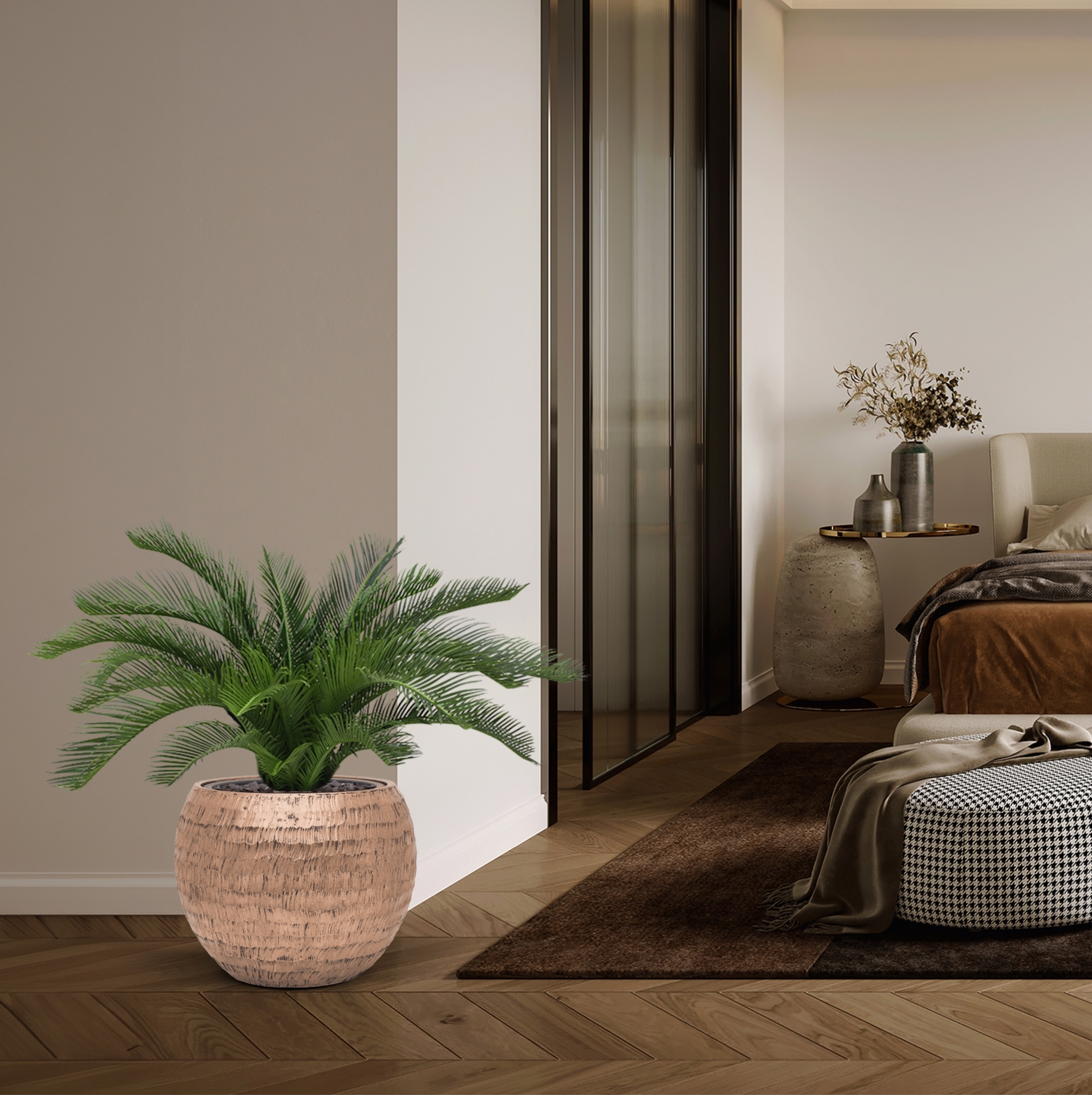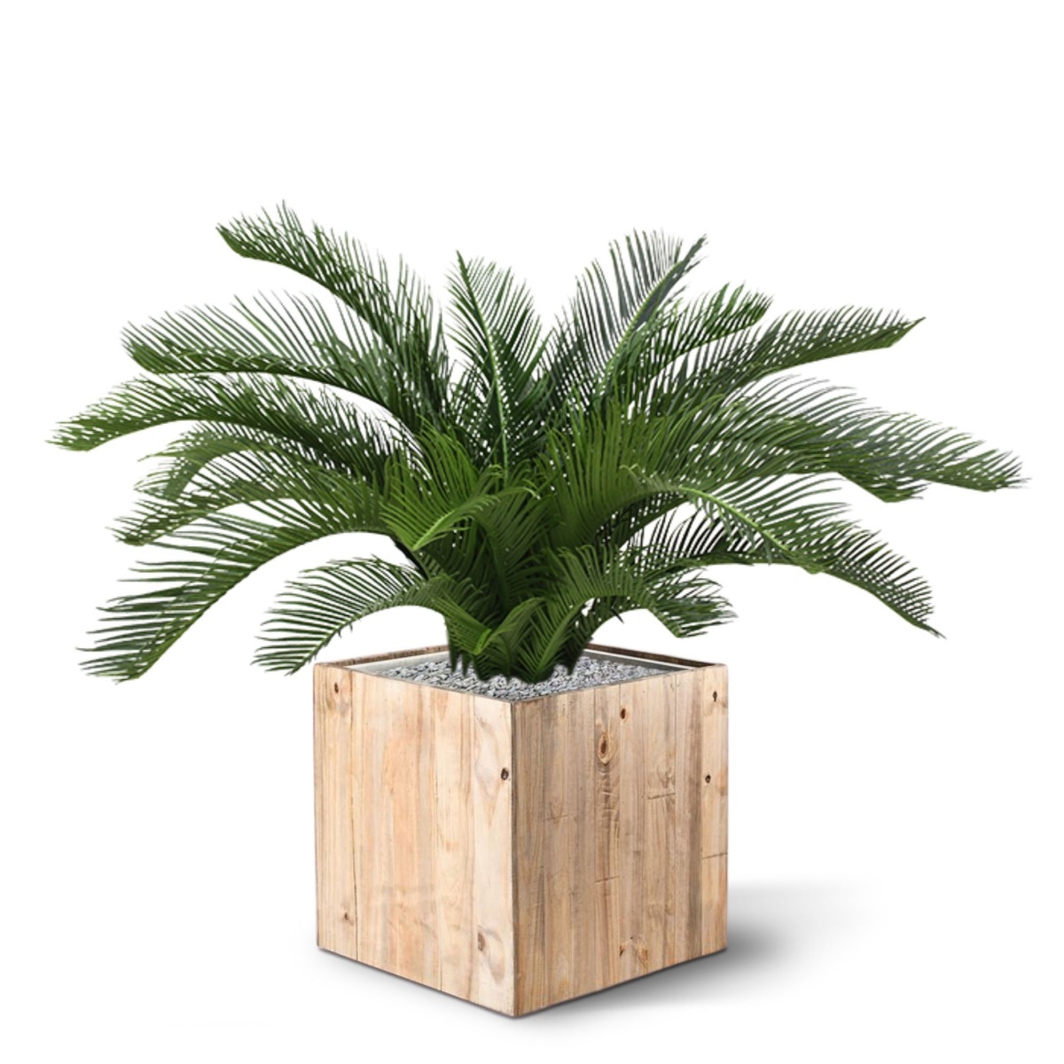 Questa palma Cycas artificiale di qualità da 60 cm non solo ha un aspetto molto reale, ma le resistenti foglie artificiali danno anche la sensazione della palma vera! Questa Cycas Deluxe è realizzata con materiali di alta qualità e ha un'altezza totale di 50-6