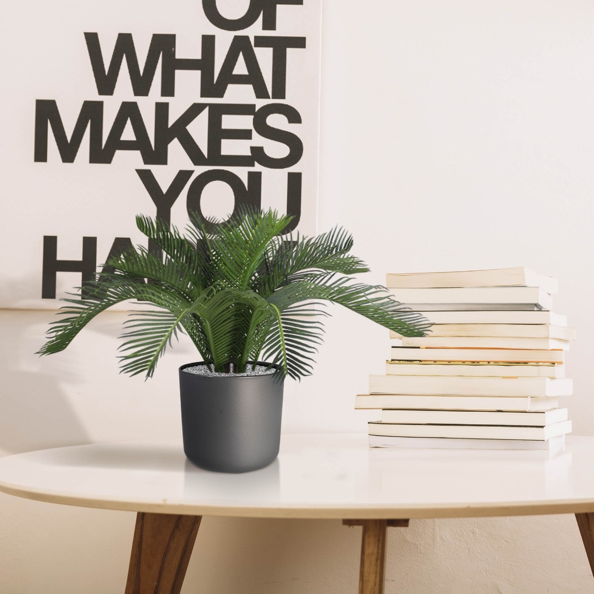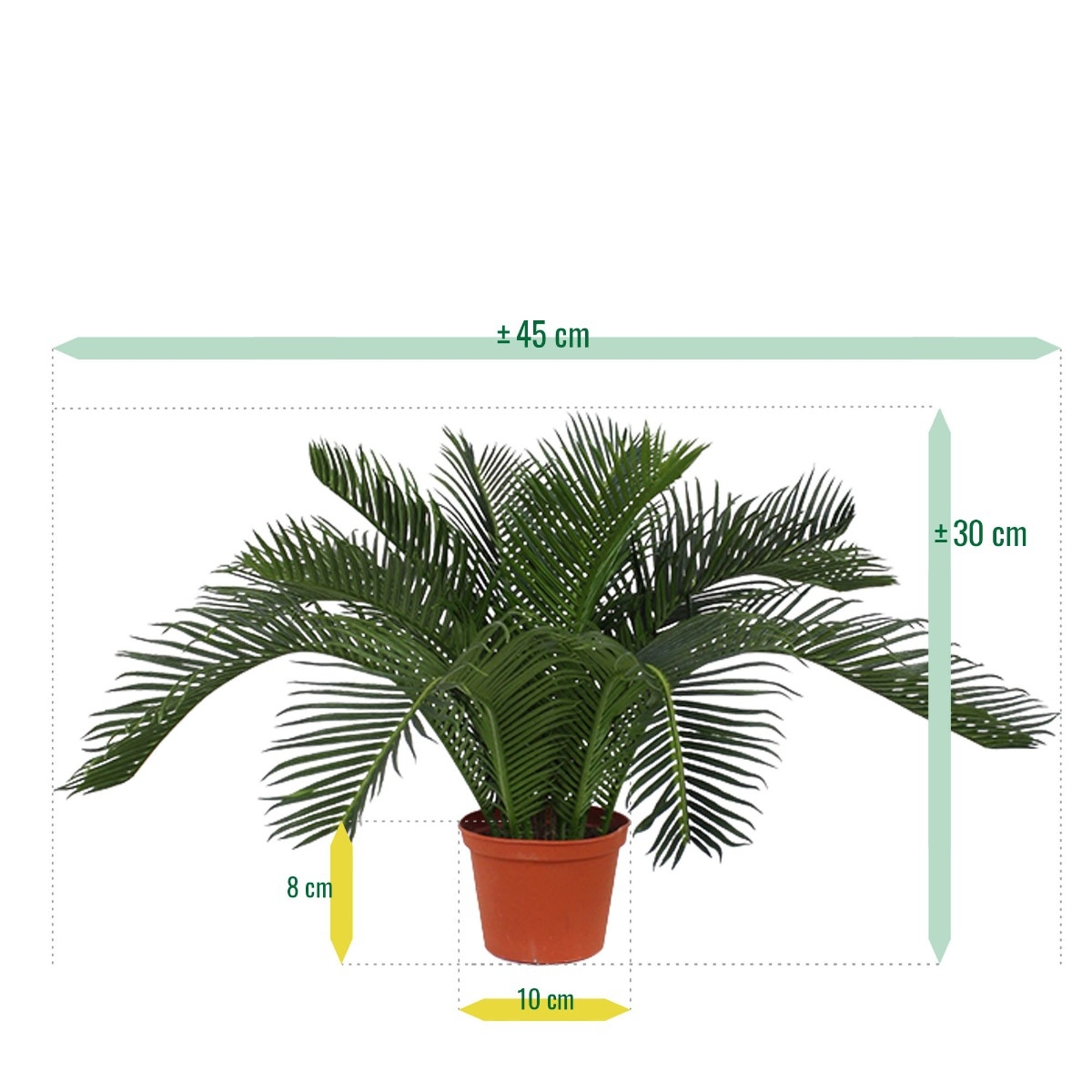 Questa nuova palma artificiale Cycas Baby non solo ha un aspetto molto reale, ma le sue foglie di plastica dura si sentono proprio come le vere palme Cycas! La Cycas artificiale è realizzata con materiali di alta qualità e ha un'altezza di circa 30 cm. La pian