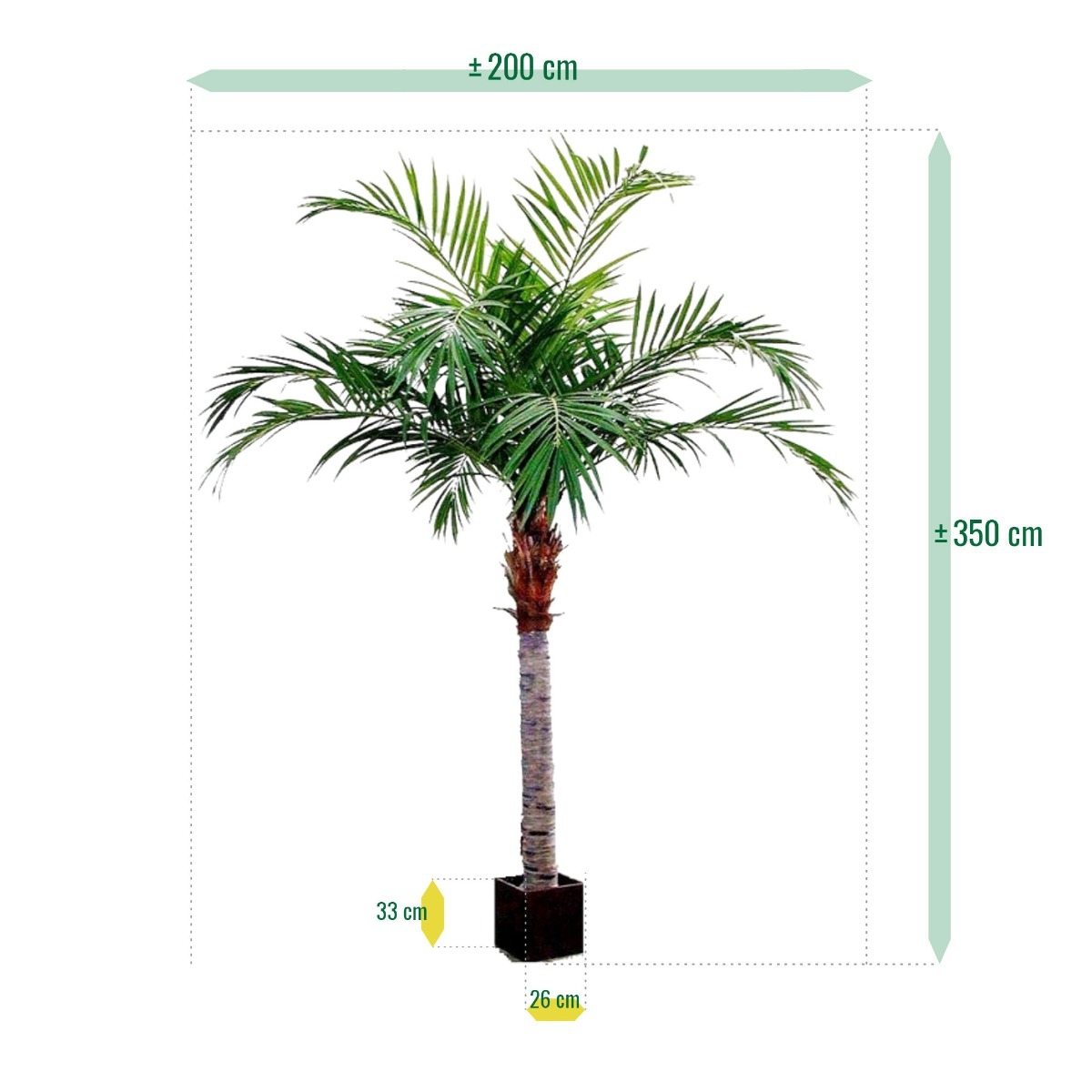 Se state cercando una palma artificiale di alta qualità e di grandi dimensioni, allora questa palma Majesty gigante è la scelta che fa per voi! La palma artificiale è realizzata con materiali di alta qualità e ha un'altezza totale di circa 325-350 cm (a second