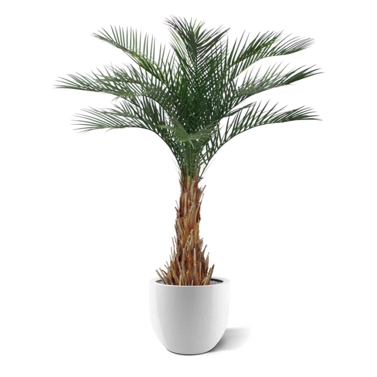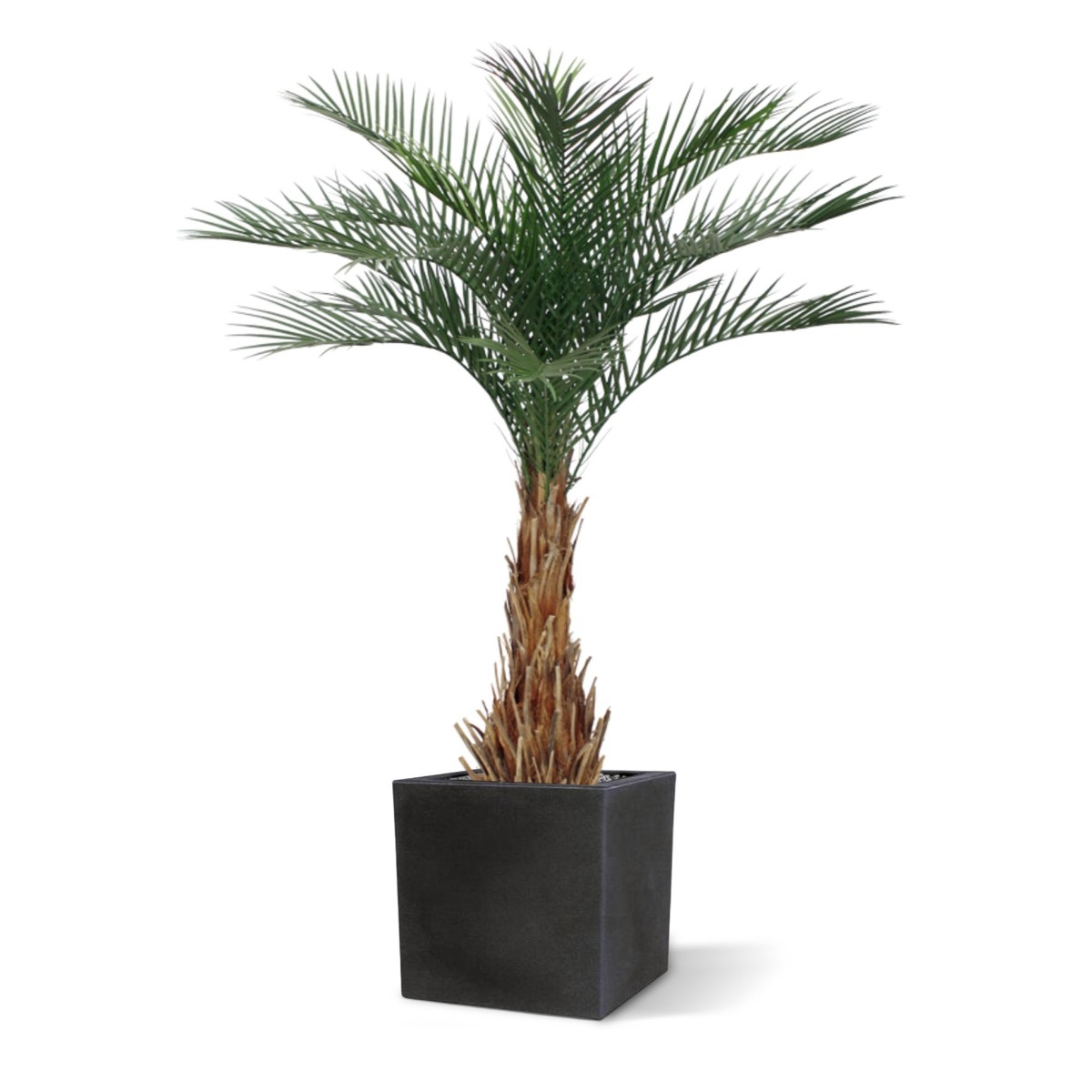 Questa bellissima palma Phoenix Deluxe 180 cm è un perfetto creatore di ambienti tropicali per i vostri interni! La palma artificiale Phoenix è costruita su un robusto tronco di legno, rifinito con corteccia di palma. La corona naturale ha un diametro di circa
