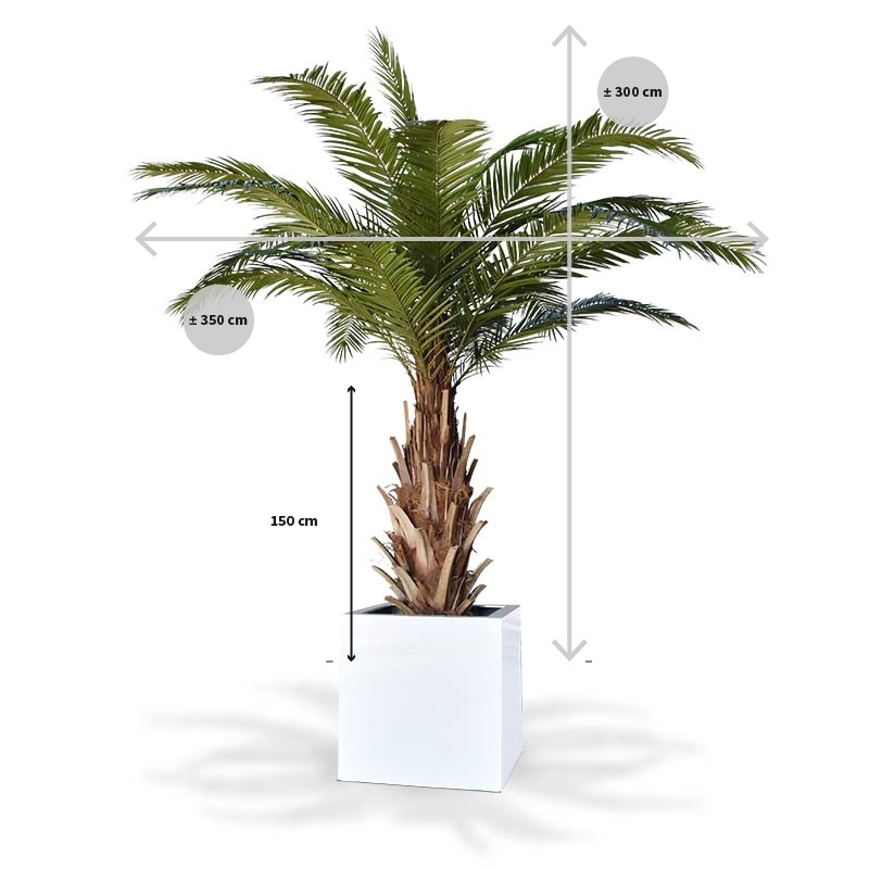 Avete già visto questa gigantesca palma canaria Art Phoenix che misura ben 3 metri di altezza alla base? Scommettiamo che questo megapalma attirerà gli sguardi ammirati dei vostri ospiti? Attenzione garantita con questa palma artificiale fantasticamente ricrea