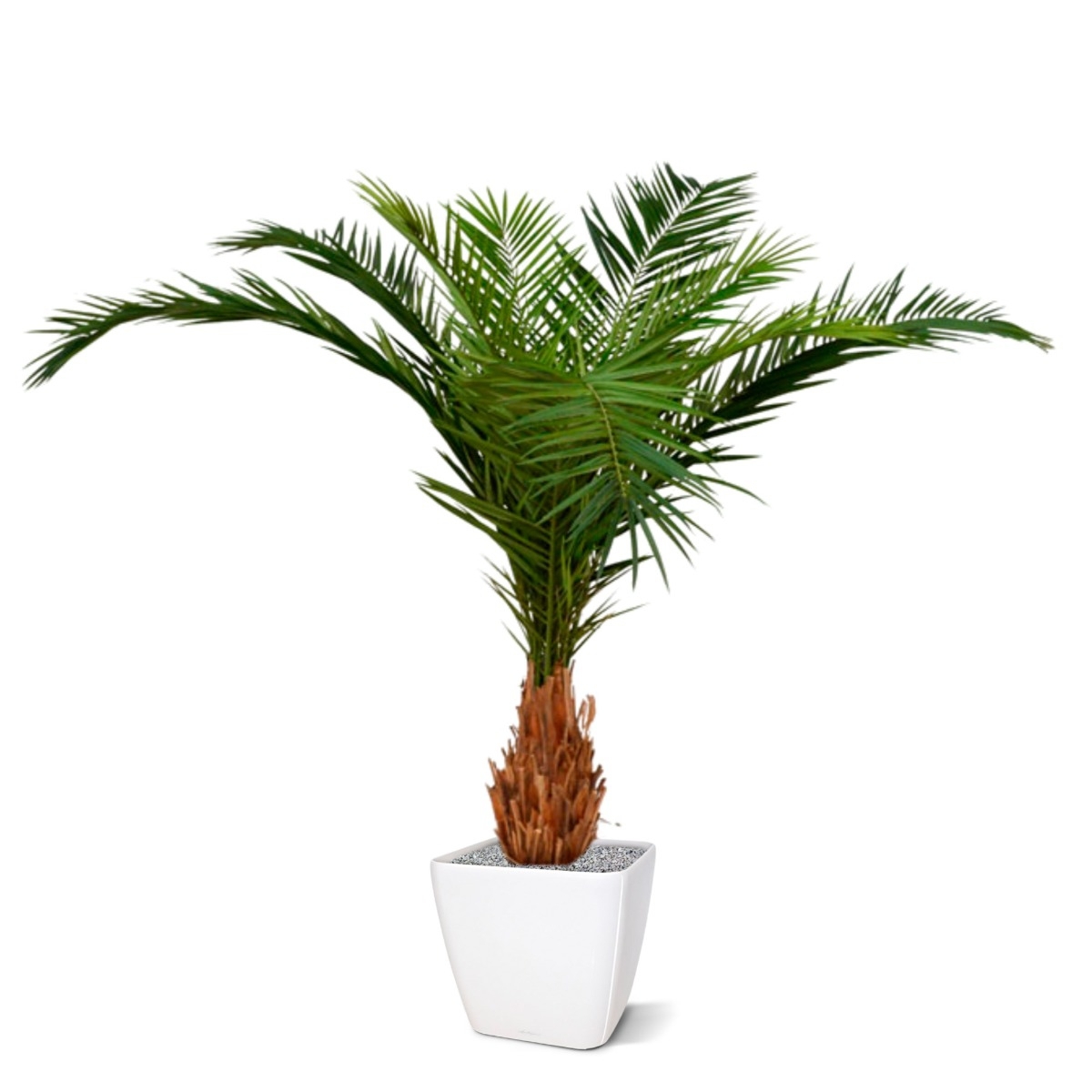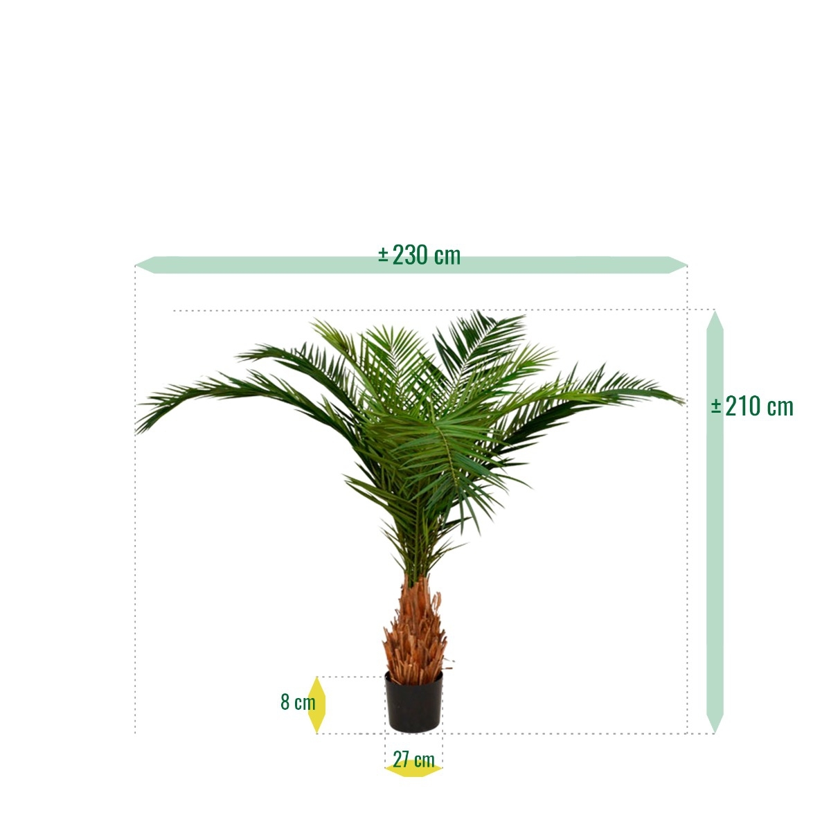 Questa bellissima Palma Artificiale Canarie Deluxe 210 cm è un fantastico ambasciatore tropicale per i vostri interni! La Palma Canarie appartiene alla famiglia delle Phoenix e trova le sue origini nelle Isole Canarie. Come palma artificiale, è costruita su un