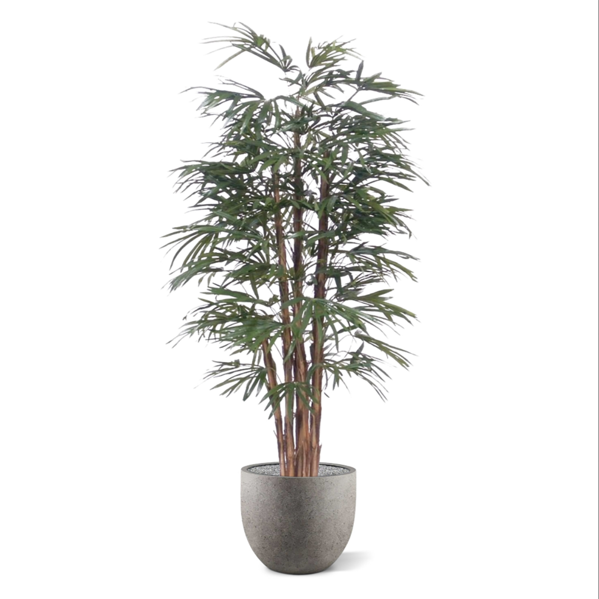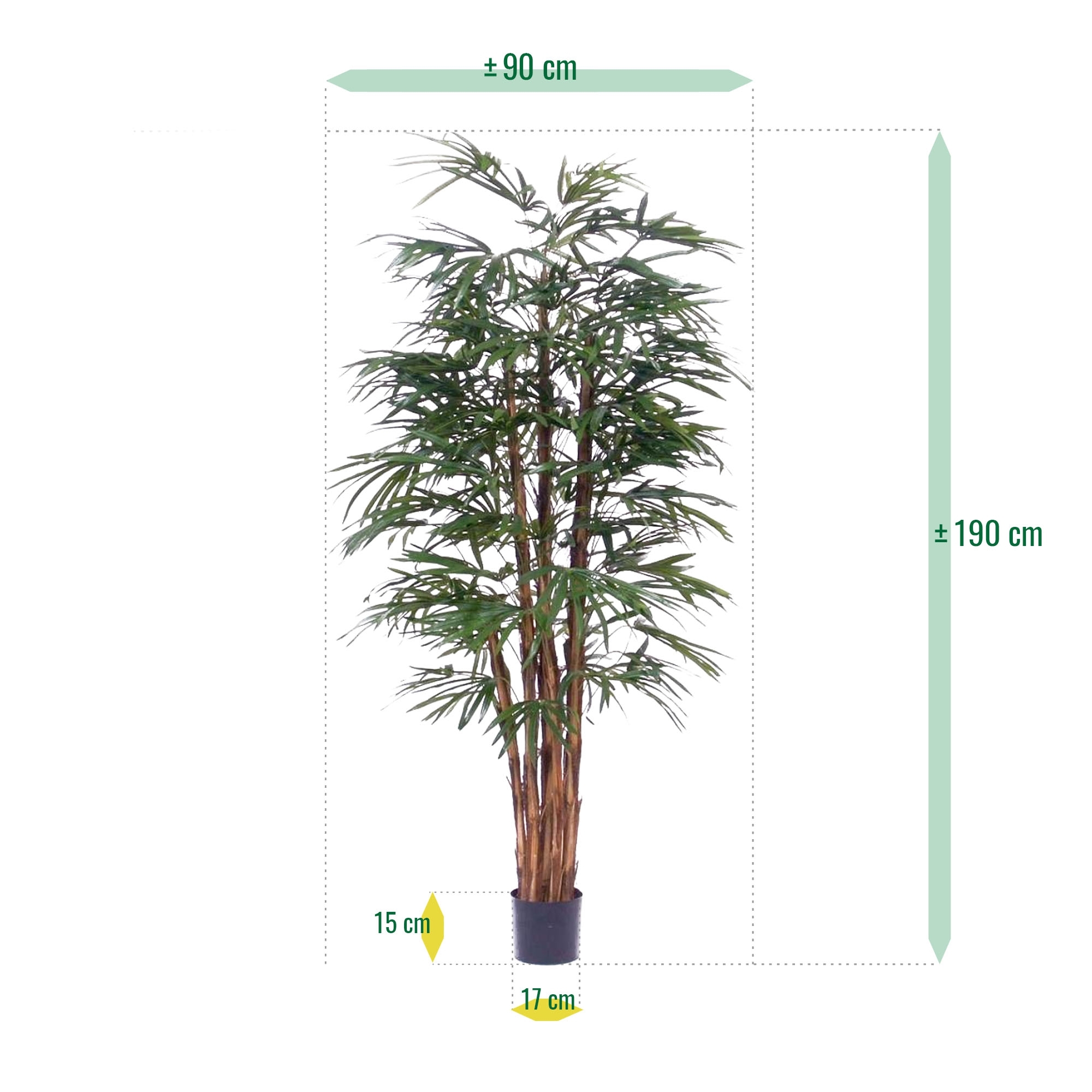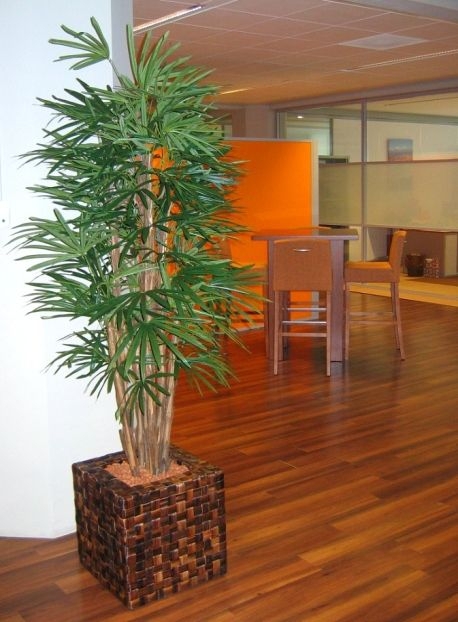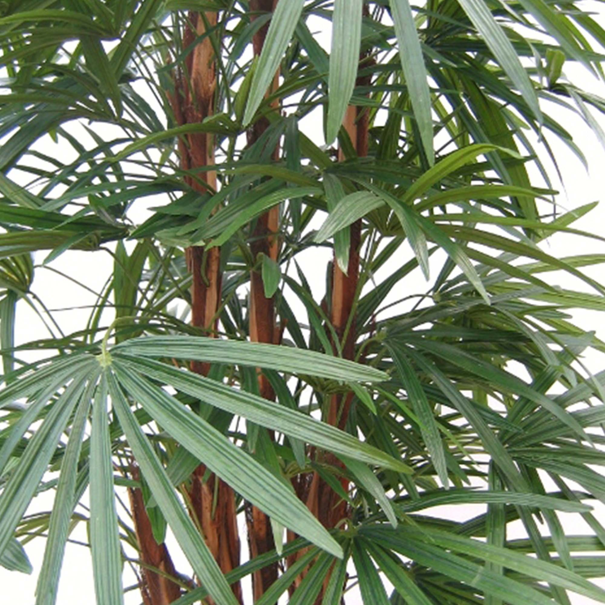 Albero artificiale di alta gamma molto naturale. Le foglie di raphis sono lavorate su veri tronchi di legno e hanno una bellissima stampa di foglie. Grazie al gran numero di foglie, l'albero non solo ha un aspetto molto lussuoso, ma anche molto fedele alla nat