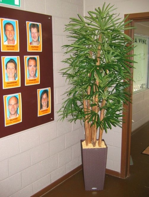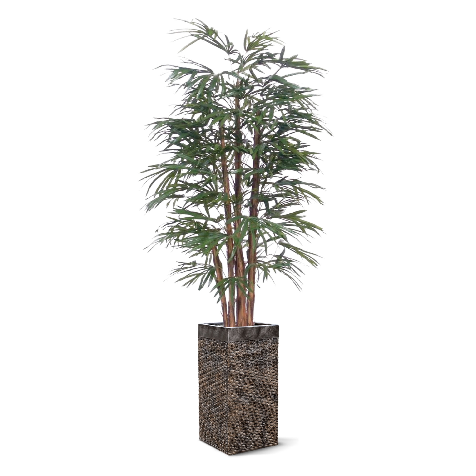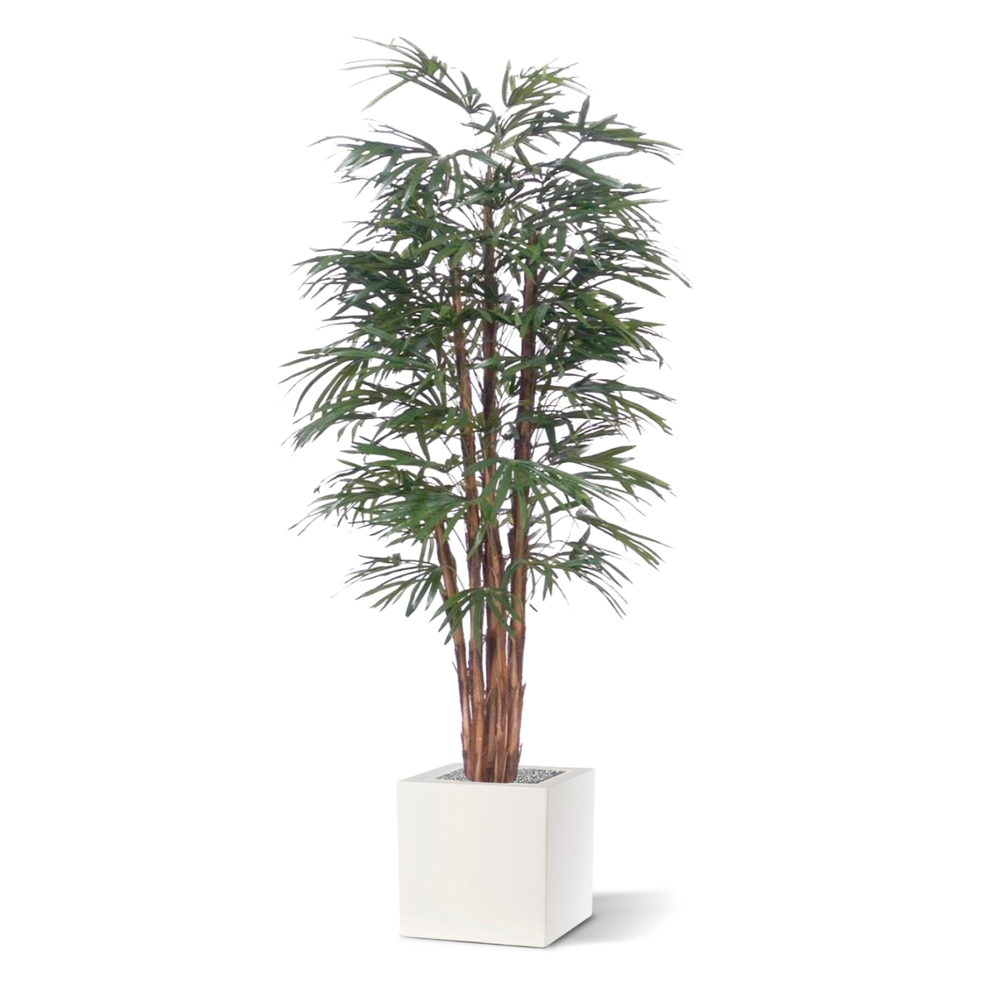 Albero artificiale di alta gamma molto naturale. Le foglie di raphis sono lavorate su veri tronchi di legno e hanno una bellissima stampa di foglie. Grazie al gran numero di foglie, l'albero non solo ha un aspetto molto lussuoso, ma anche molto fedele alla nat