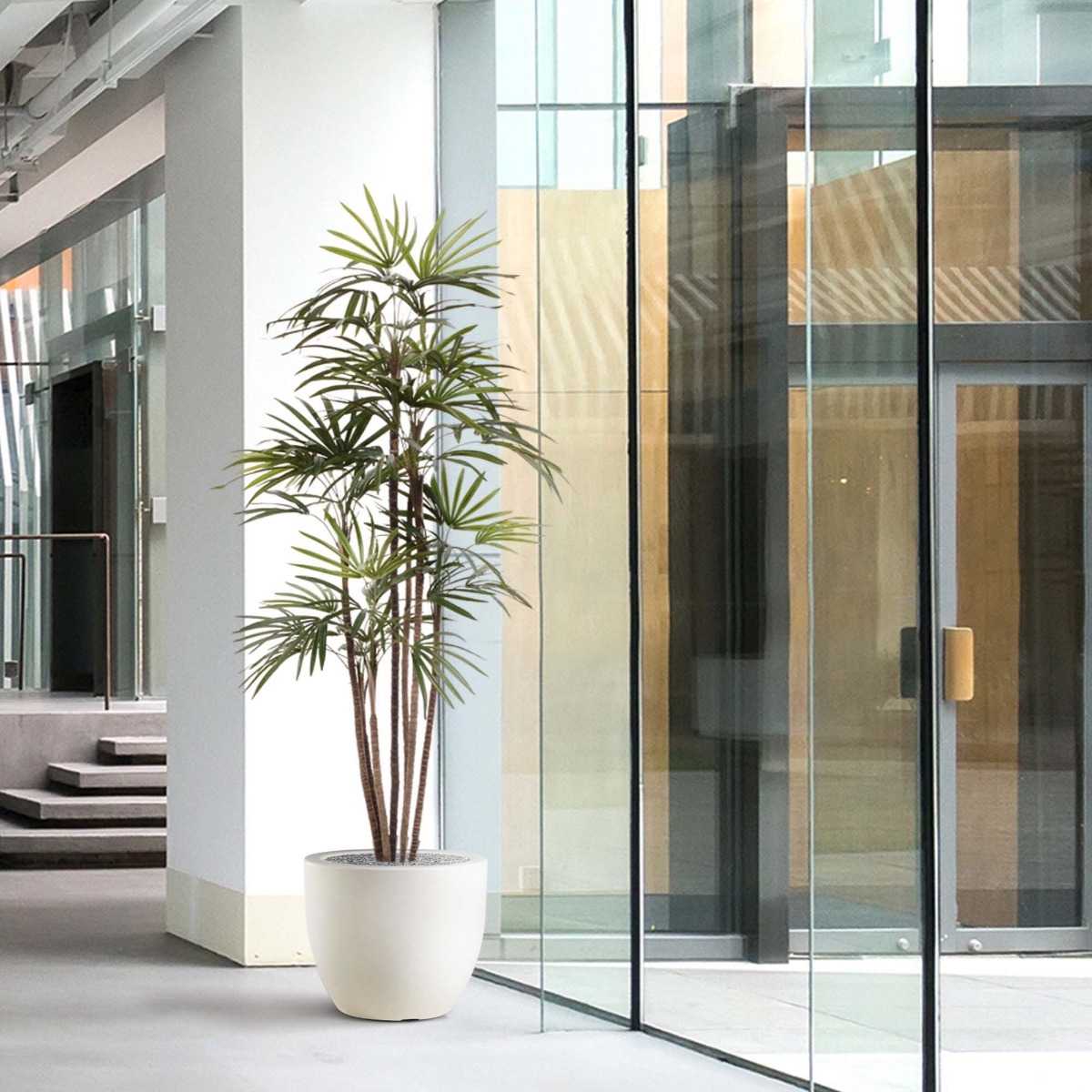 La Palma di Raphis è originaria della Cina meridionale e di Taiwan. Questa pianta d'appartamento è chiamata anche palma bambù o palma bastone per via dei suoi caratteristici tronchi stretti. La palma artificiale Raphis è alta 170 cm e ha una larghezza massima