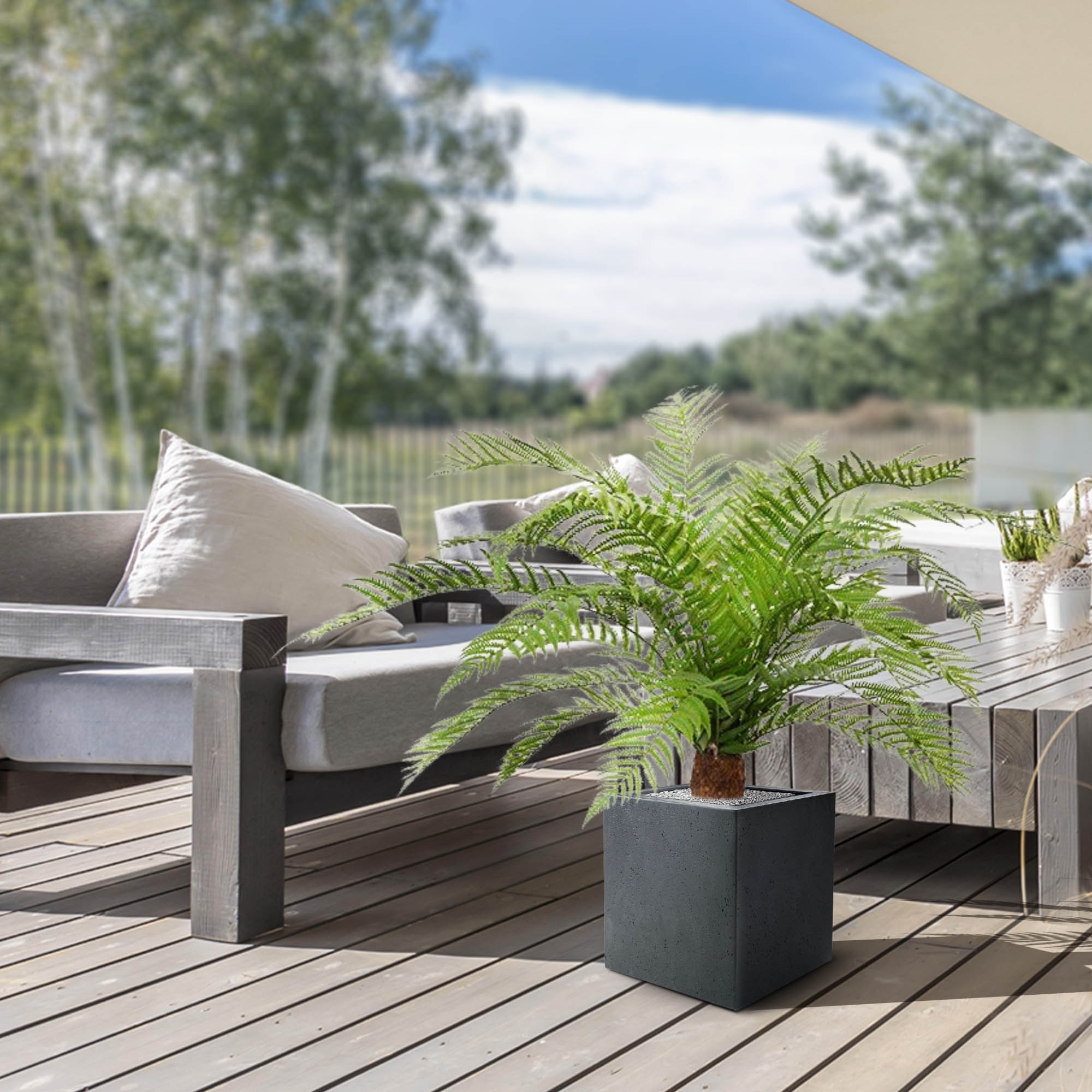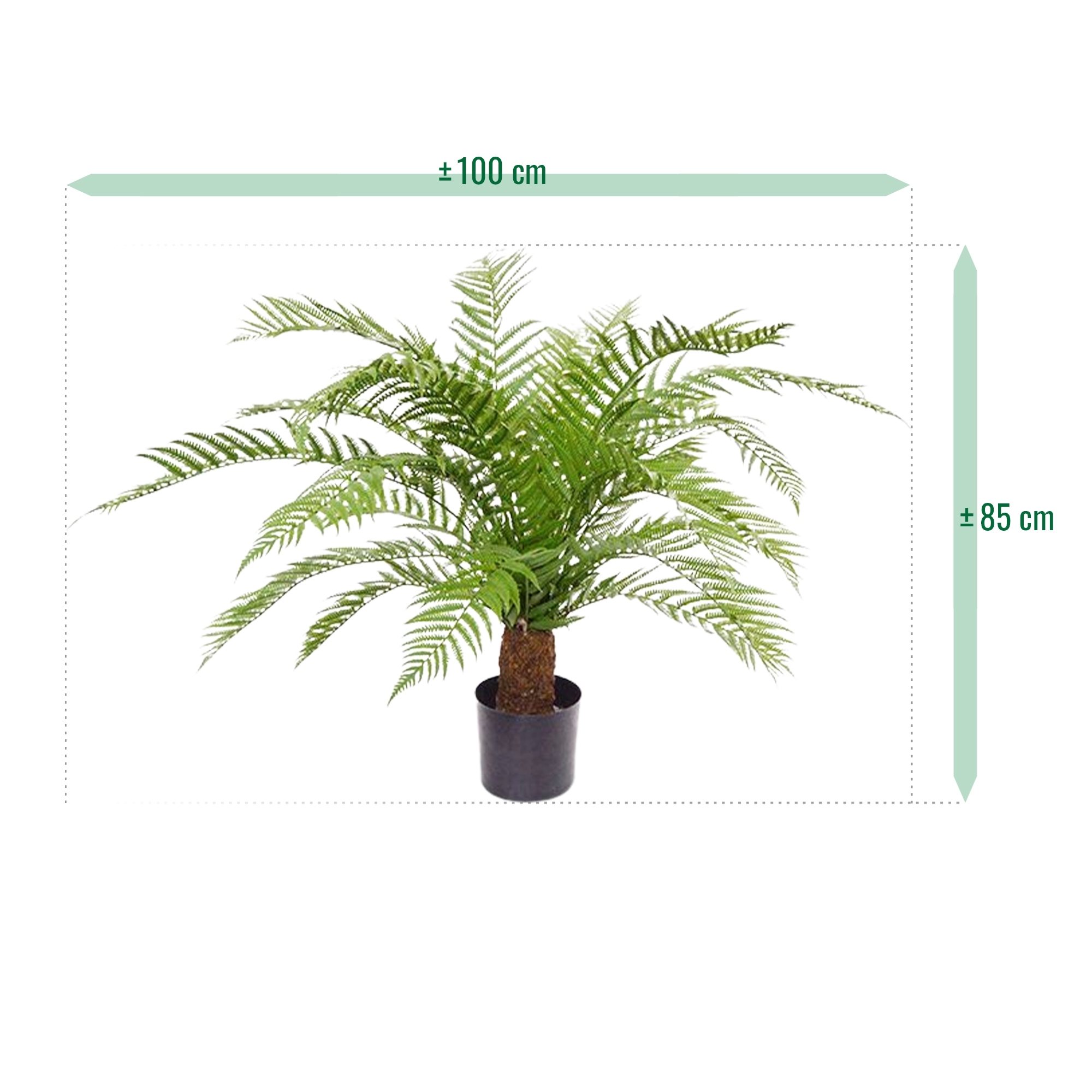 La nostra felce artificiale Alsophillia XXL 80 cm è molto apprezzata al momento e capiamo perché! Questa felce artificiale realistica è garantita contro lo scolorimento per 8 anni grazie alla protezione UV contenuta nella materia prima. Così avrete l'effetto v
