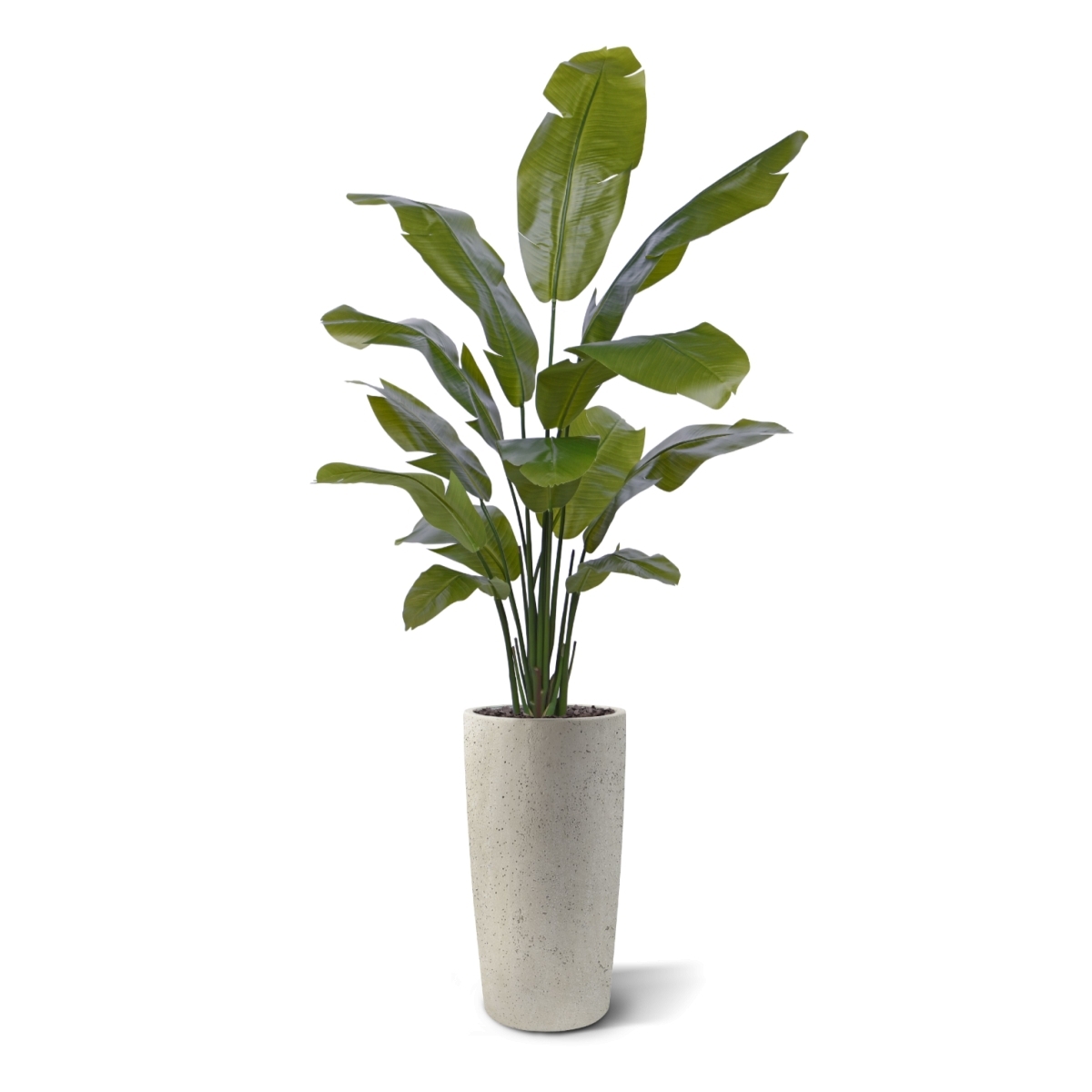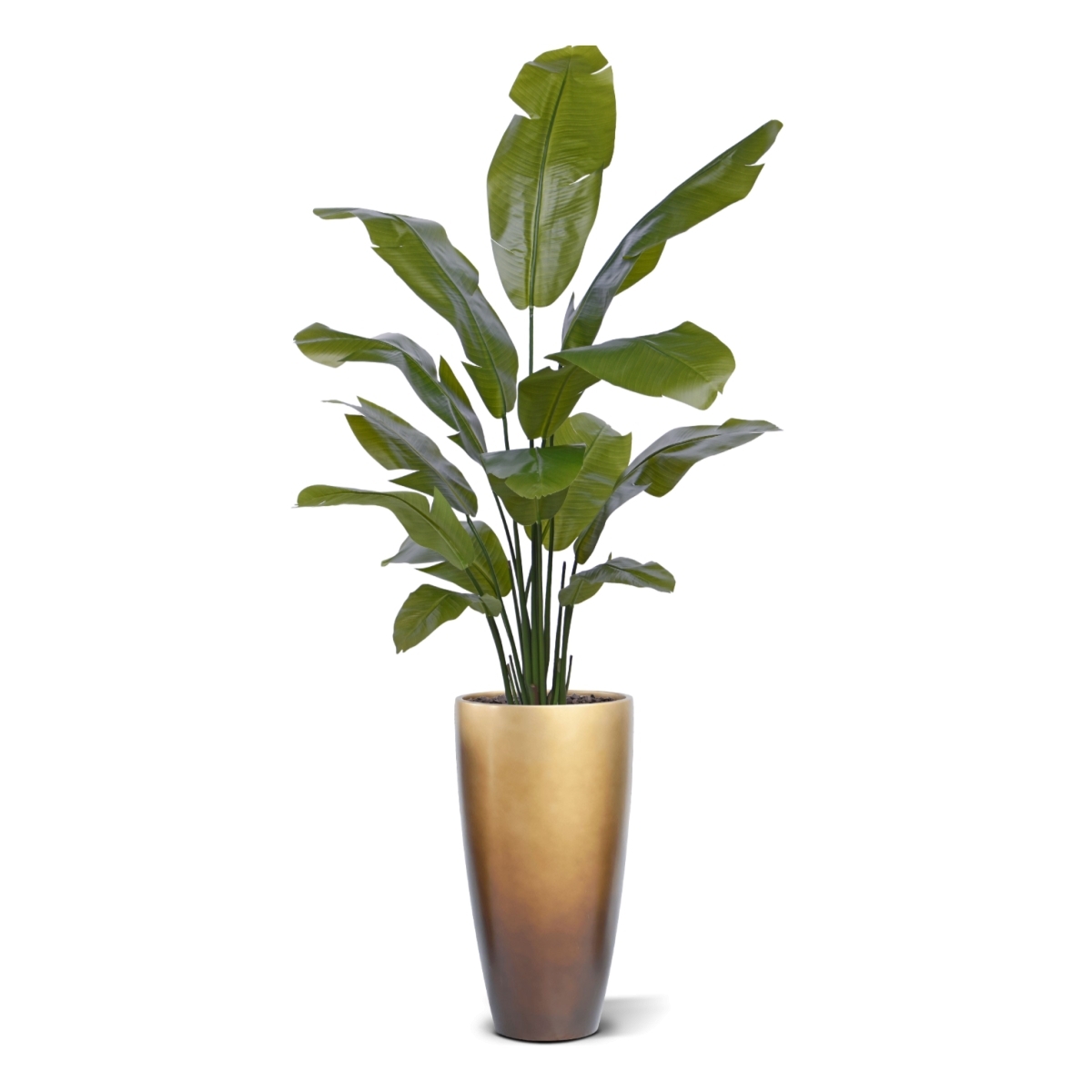 Scopri il fascino sofisticato della Palma Traveller 160 cm, nota anche come Ravenala o Palma Traveller. Simile alla Strelitzia, questa palma artificiale abbellisce ogni ambiente con il suo splendore. Con le sue bellissime foglie di seta artificiale, emana uno