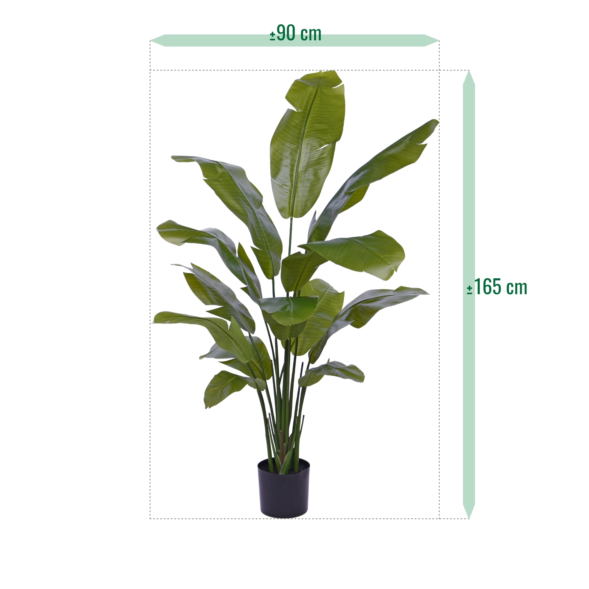 Scopri il fascino sofisticato della Palma Traveller 160 cm, nota anche come Ravenala o Palma Traveller. Simile alla Strelitzia, questa palma artificiale abbellisce ogni ambiente con il suo splendore. Con le sue bellissime foglie di seta artificiale, emana uno splendore naturale. La palma artificiale Traveller aggiunge un tocco di eleganza a vasi ornamentali sia alti che bassi. Lasciatela respirare in una stanza e guardatela prendere vita. Con una larghezza di circa 90 cm e un'altezza di 160 cm, questa palma crea un'immagine di grande impatto.