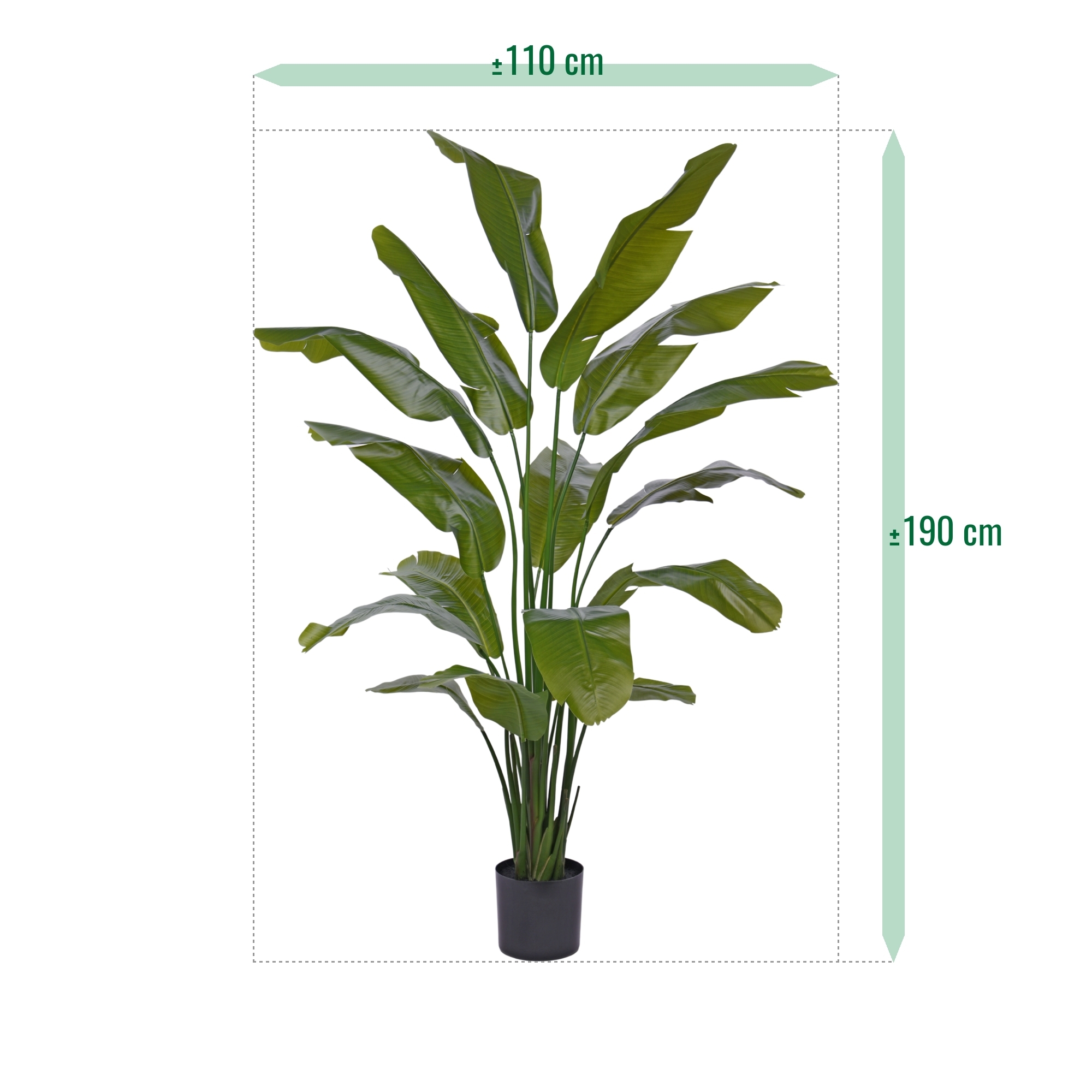 Scopri il fascino sofisticato della Palma Traveller 190 cm, nota anche come Ravenala o Palma Traveller. Imparentata con la Strelitzia, questa palma artificiale abbellisce qualsiasi ambiente con il suo splendore. Con le sue bellissime foglie di seta artificiale