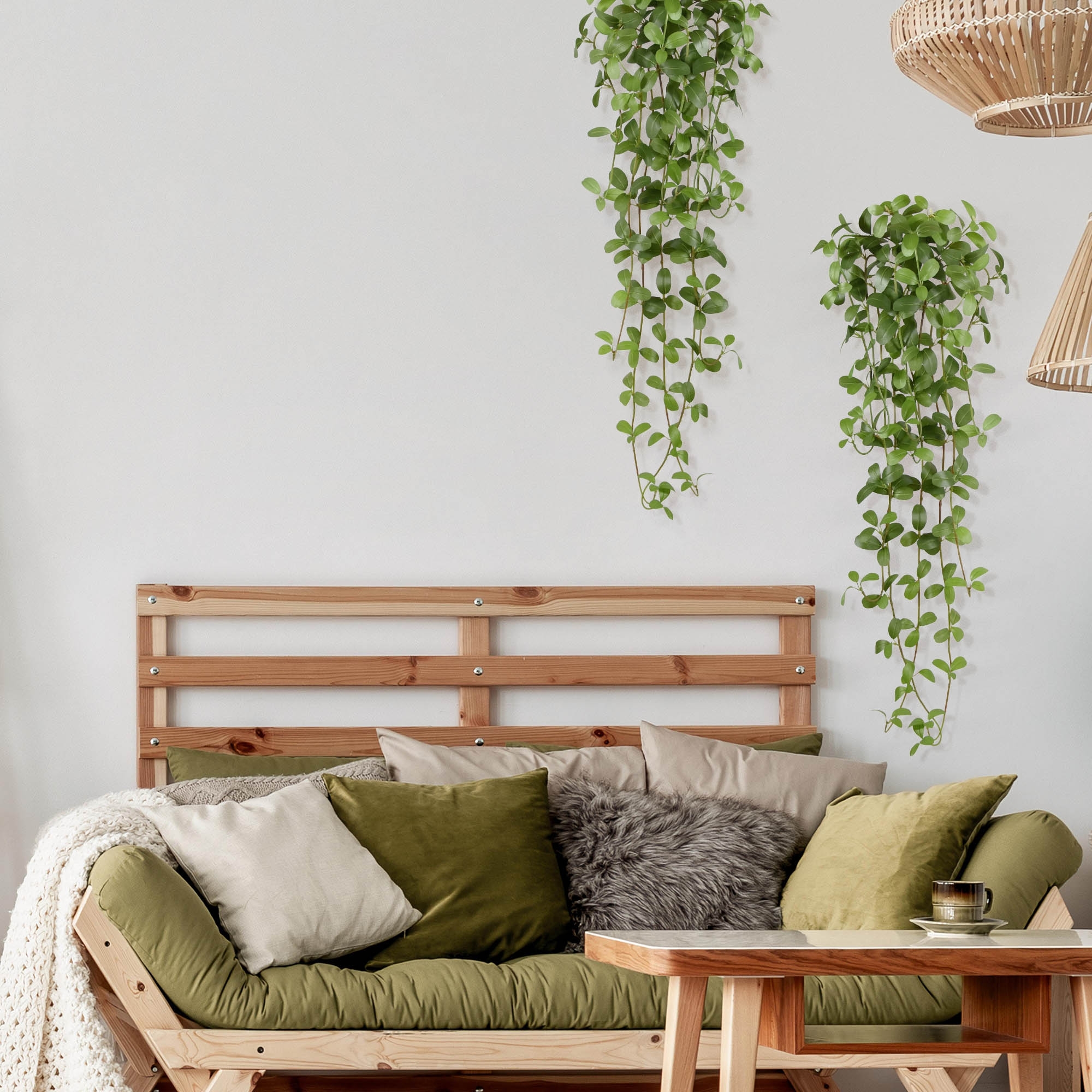 Questa pianta pensile artificiale può essere utilizzata in qualsiasi direzione. Combinate la pianta sospesa con altri tipi di piante sospese e create un look da Giungla Urbana. Se invece volete mantenere un aspetto più tranquillo, abbinate il ciondolo Jasmine