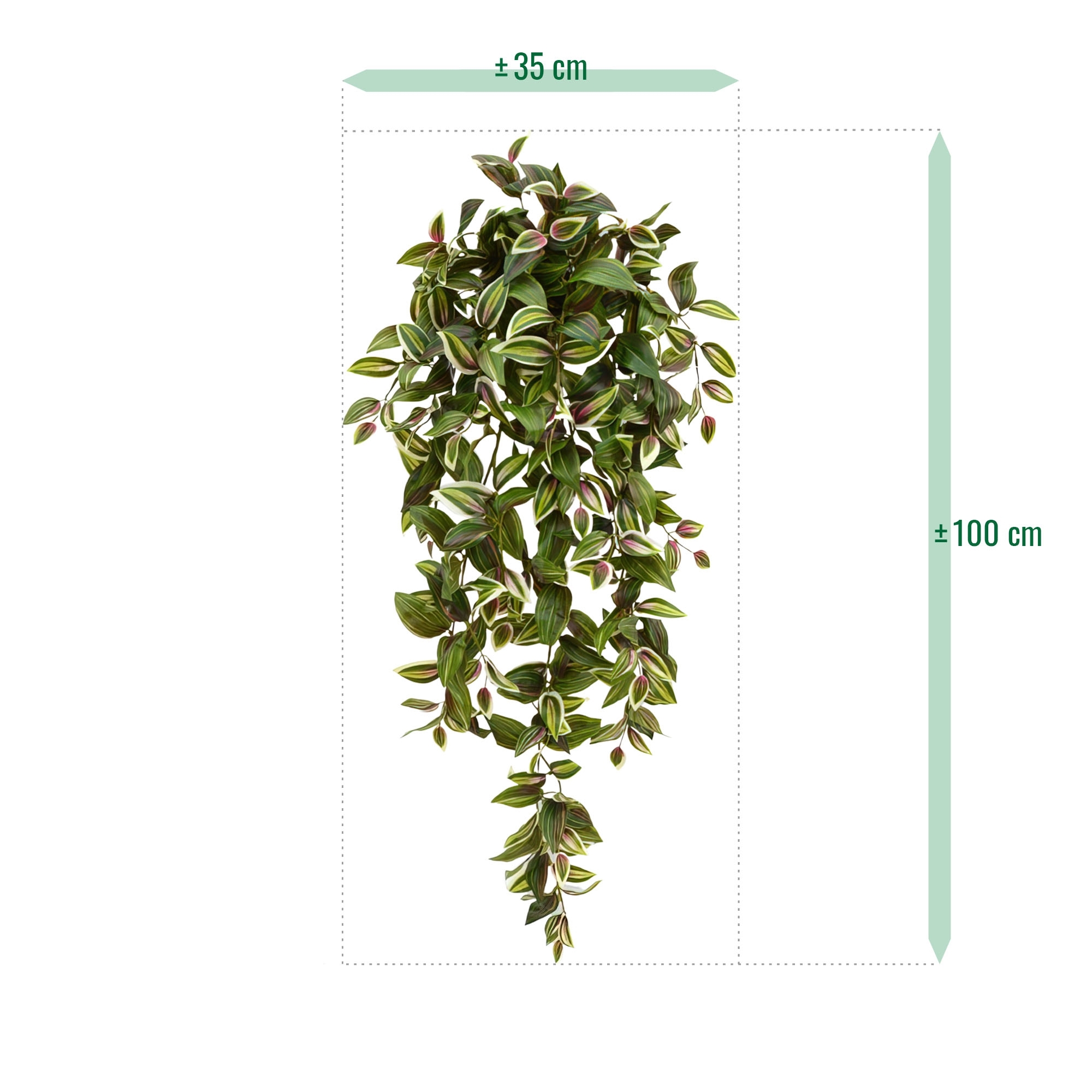 Questa bellissima e coloratissima pianta artificiale Tradescantia 100 cm variegata sembra molto naturale e reale ed è di assoluta qualità. Questa pianta artificiale di Tradescantia (Zebrina Pendula), nota anche come erba ragno, è nota per le sue foglie lunghe