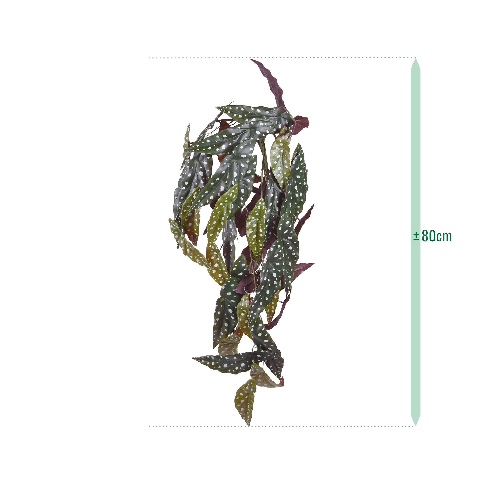 Questa pianta artificiale sospesa è un vero e proprio fine ultimo! Le foglie verdi impazzite con puntini argentati rallegrano il salotto, l'ufficio o il negozio di tutti. Chi non ne sarà felice! La lunghezza del ciondolo Begonia Maculata fedelmente ricreato è