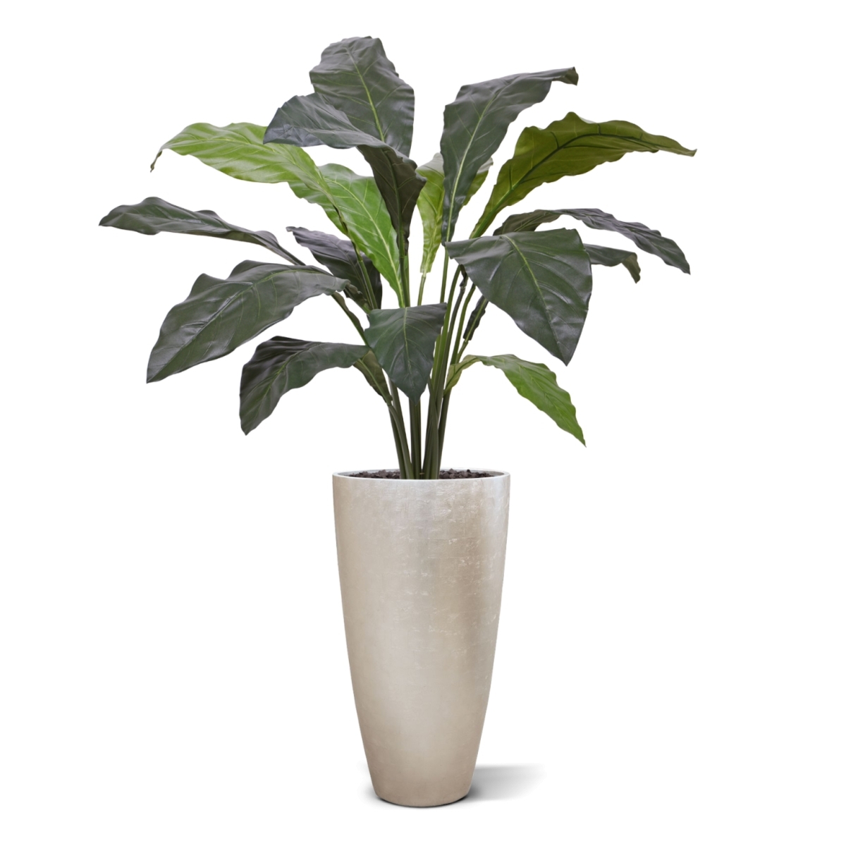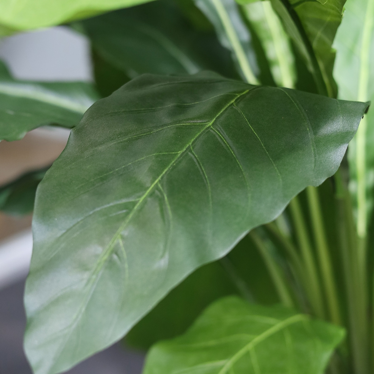 Scoprite lo splendore lussureggiante della nostra pianta artificiale Anthurium Jungle King Deluxe, alta 130 cm e larga 120 cm. Lasciatevi incantare dallo splendore lussureggiante di questa creazione artistica, che conferisce un'atmosfera lussureggiante e tropicale al vostro spazio. Le sue magnifiche foglie sono il pezzo forte di questa pianta artificiale, con un aspetto realistico che fa quasi credere di trovarsi in una giungla lussureggiante.