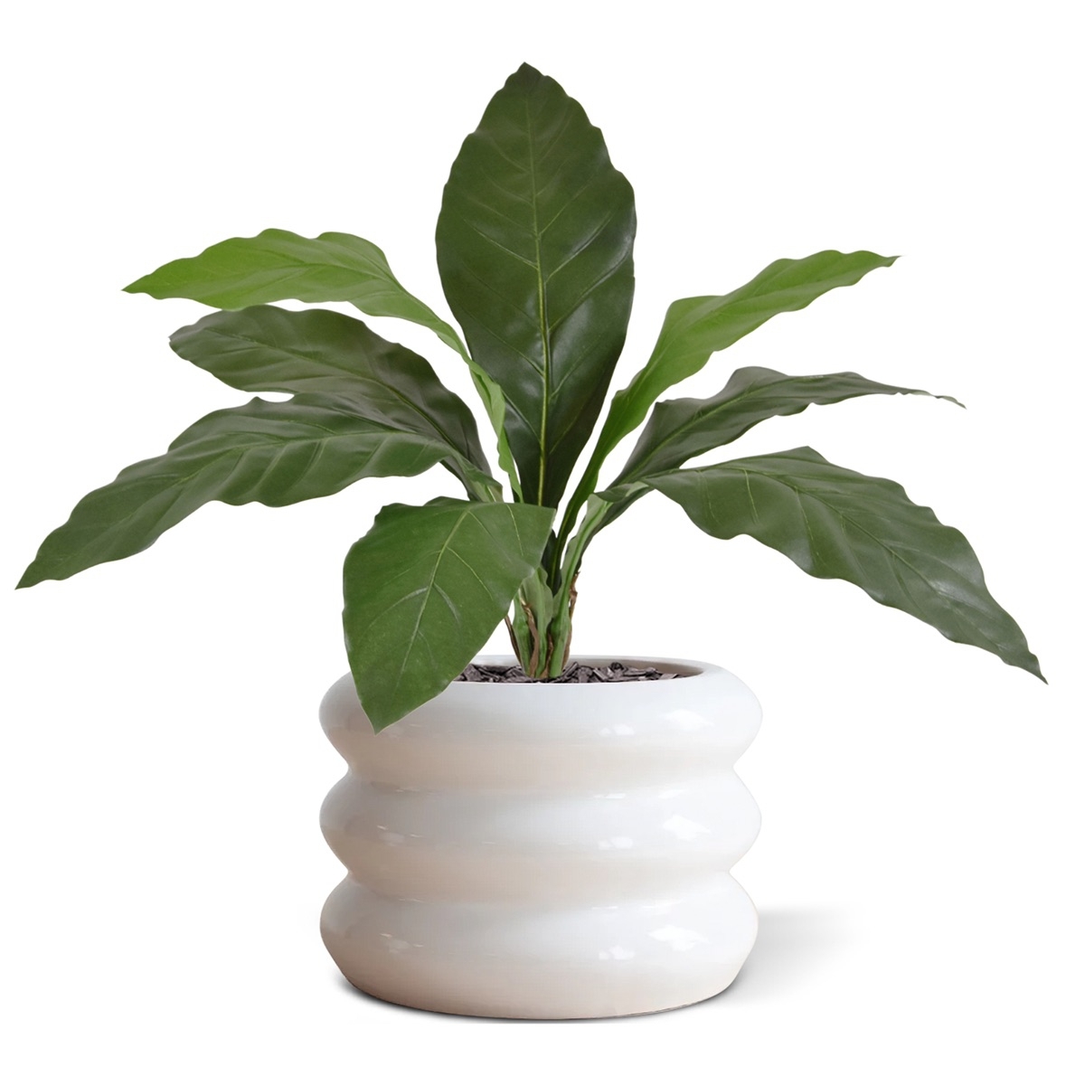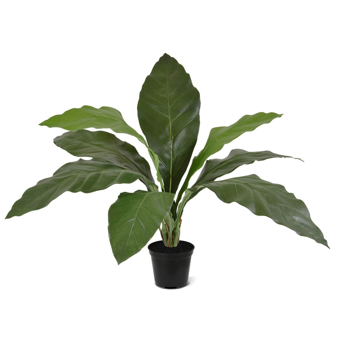 Questa pianta artificiale verde particolarmente bella, chiamata Jungle King, appartiene all'ampia famiglia degli Anthurium. Le bellissime foglie verde scuro sono imitate molto bene e hanno lo stesso aspetto esclusivo di quelle vere.Le grandi foglie artificiali