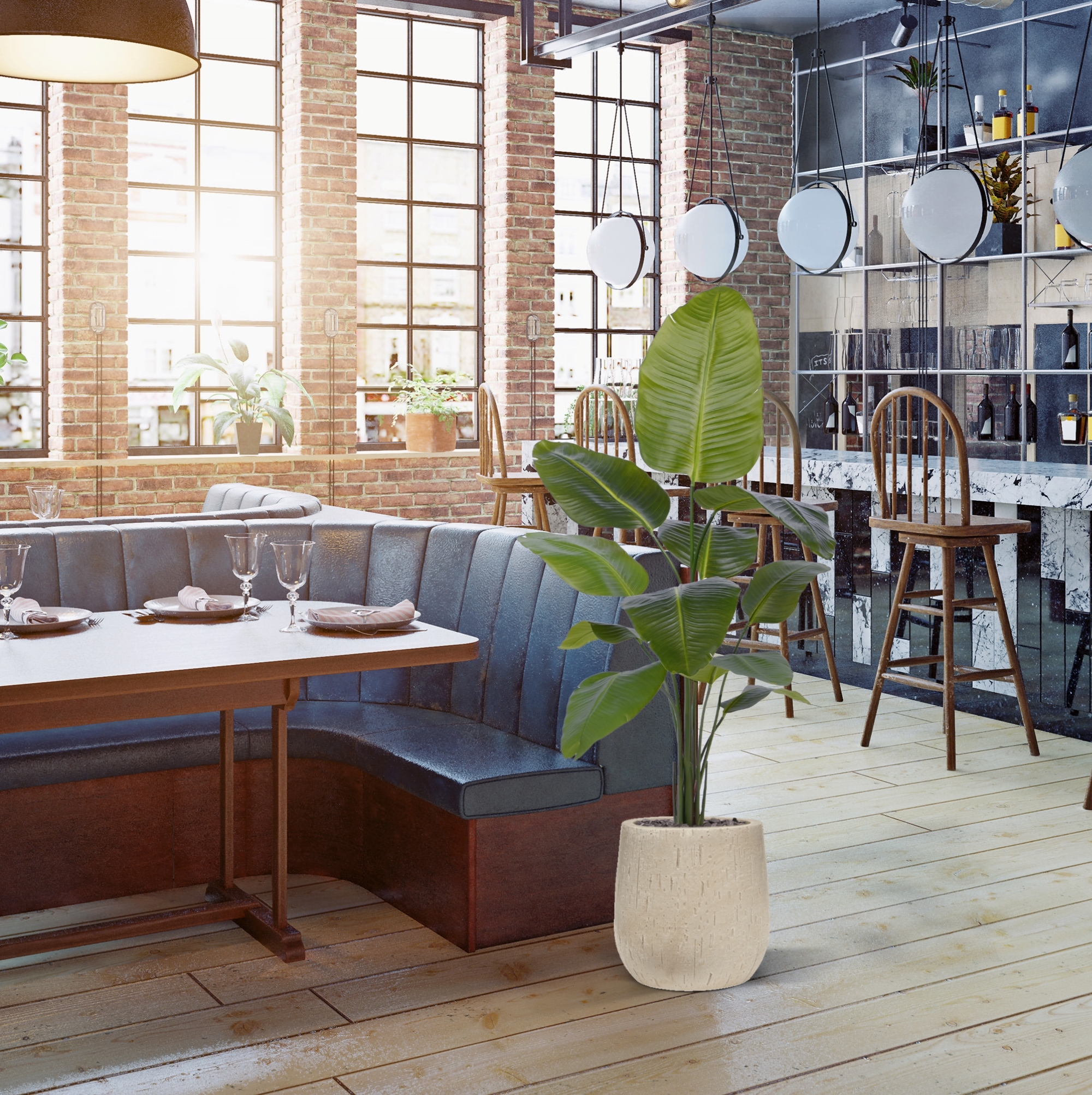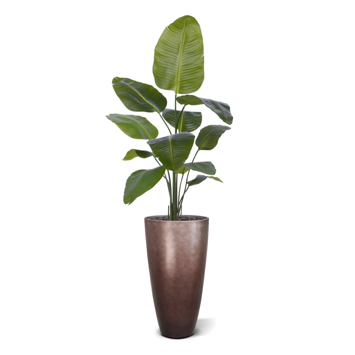 Dategli un posto in salotto o usatene diversi per ravvivare l'ufficio o lo showroom. Questa pianta artificiale può essere collocata in un vaso ornamentale alto o basso. Dare alla pianta un po' di spazio le consentirà di svilupparsi al meglio. La Strelitzia sembra una vera pianta della giungla e si adatta molto bene a un'atmosfera tropicale o bohémien. I vasi decorativi mostrati di seguito possono essere ordinati direttamente insieme ad essa con un costo aggiuntivo.