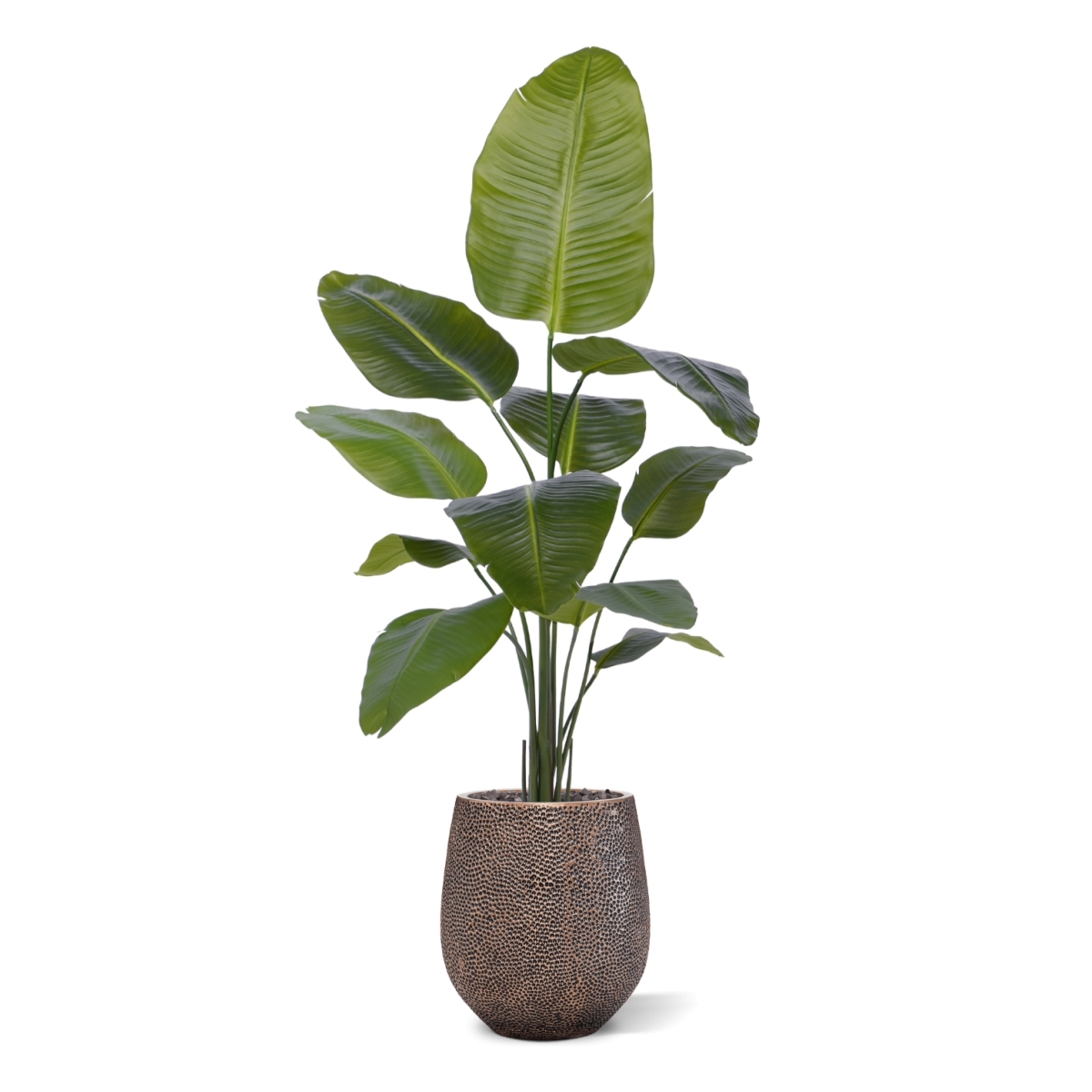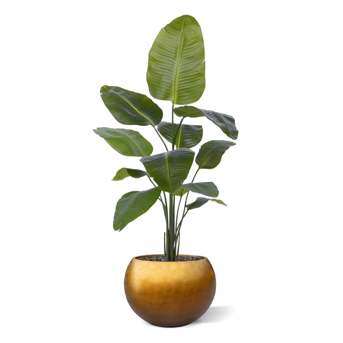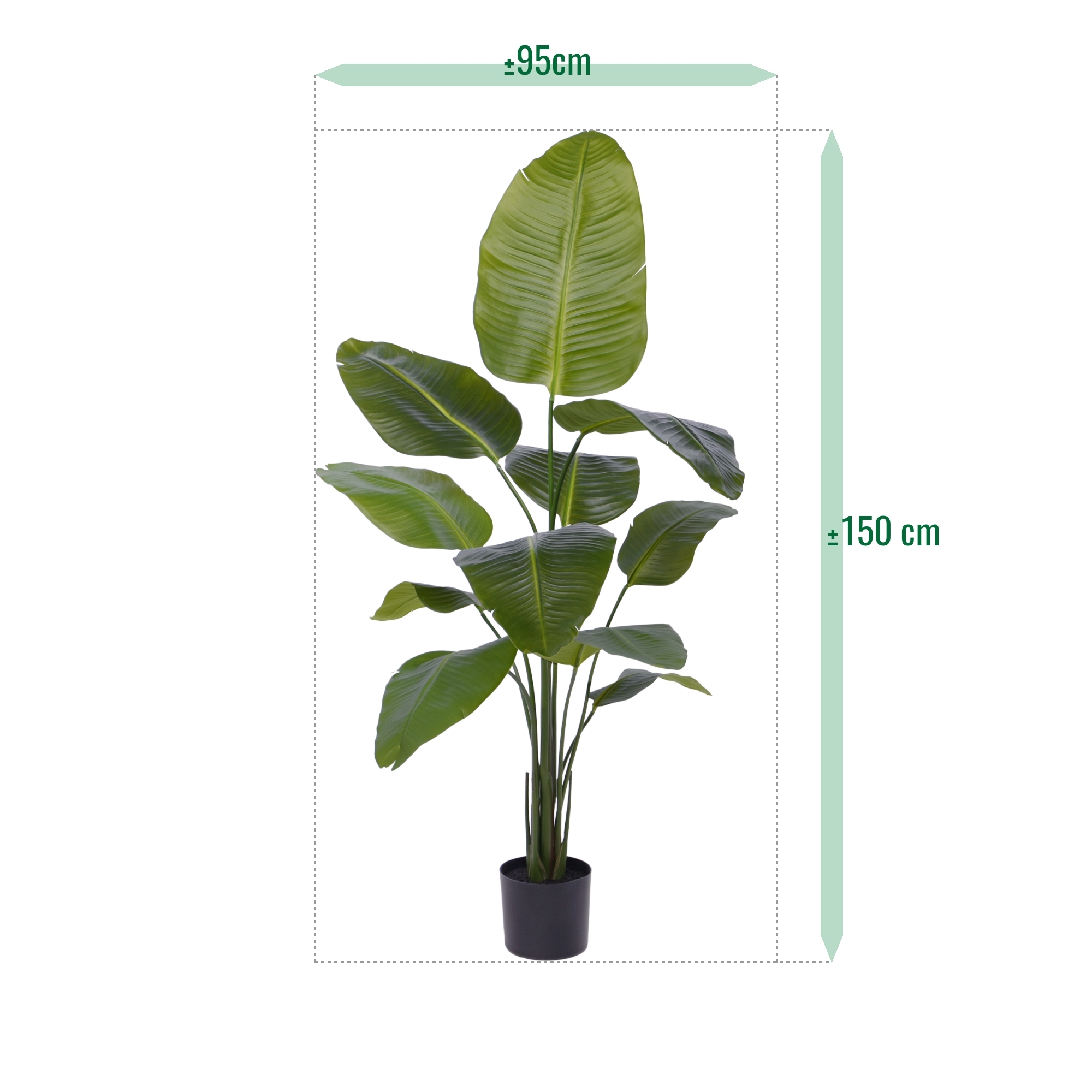 La pianta artificiale Strelitzia Nicolai porta senza sforzo il fascino esotico del Sudafrica nel vostro spazio vitale. Godetevi il suo verde lussureggiante e l'impressionante altezza di 150 cm, completata da 11 bellissime foglie di seta artificiali. Facile da montare, è ideale sia per il soggiorno che per l'ufficio. Questa maestosa pianta aggiunge un tocco di bellezza tropicale a qualsiasi spazio, perfetto per un'atmosfera rilassata e bohémien o per le vibrazioni della giungla. Abbinatela alla nostra selezione di vasi ornamentali per un tocco di stile in più.