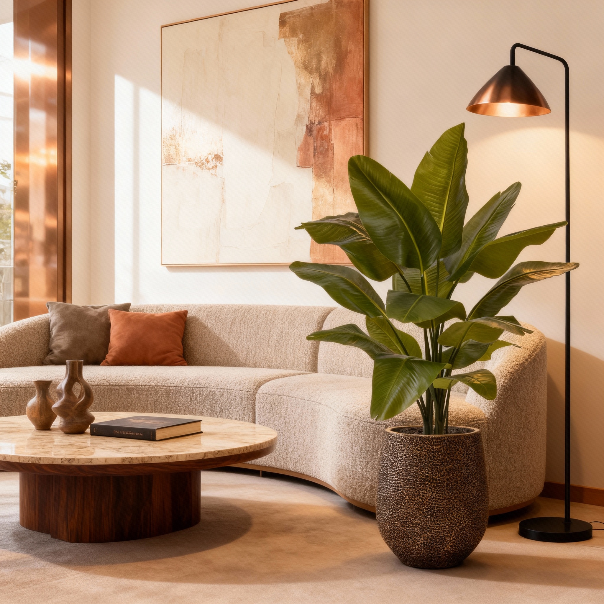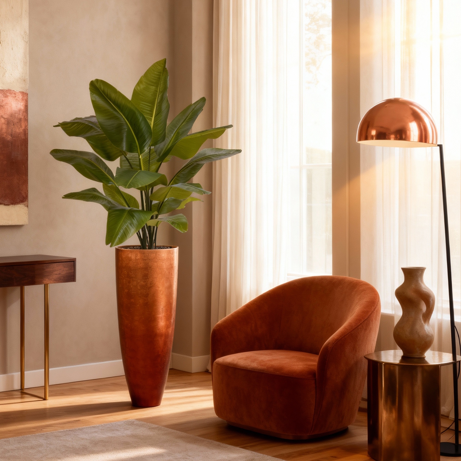La Strelitzia Nicolai XL Palma Artificiale combina eleganza tropicale e praticità. Con le sue grandi foglie realistiche e il suo impressionante volume, questa pianta è una scelta perfetta per soggiorni, uffici e showroom. Ideale per creare un’atmosfera lussuosa senza le preoccupazioni della manutenzione.
