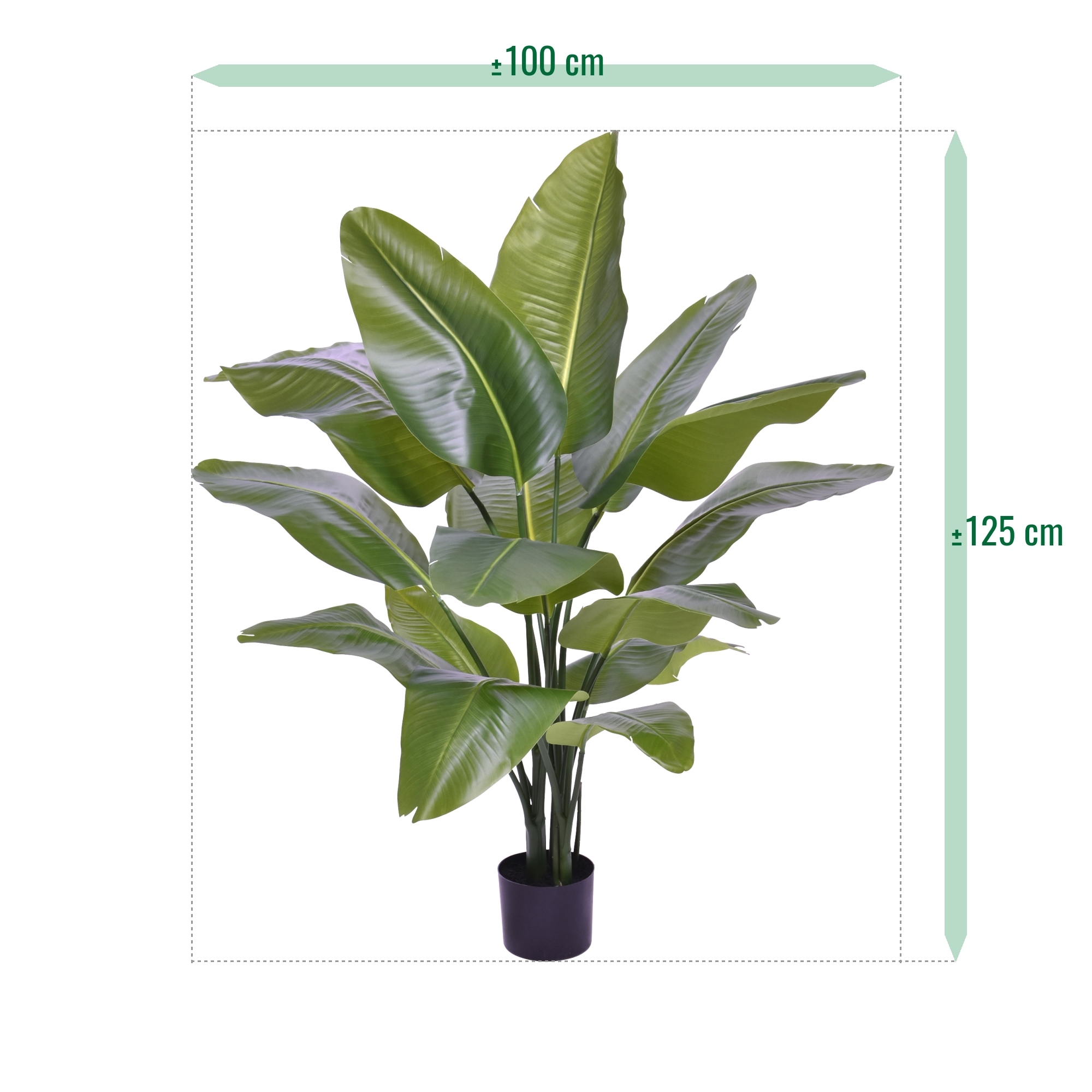 La Strelitzia Nicolai XL Palma Artificiale 125cm è un’aggiunta impressionante alla nostra collezione, ispirata alla giungla tropicale. Questa variante si distingue per il suo fogliame abbondante e le sue foglie di dimensioni maggiori, rendendola una vera versi