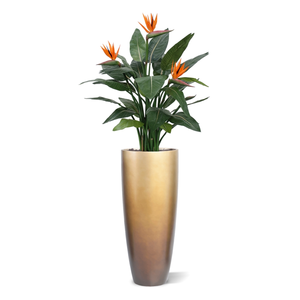 Con un'altezza di circa 115 cm, questa pianta artificiale porta un tocco di esotismo in ogni stanza. Viene fornita in un pratico vaso interno in plastica, pronto per essere sfoggiato immediatamente. Volete un tocco di eleganza in più? I nostri bellissimi vasi decorativi sono disponibili su ordinazione insieme alla vostra pianta artificiale di Strelitzia. Per chi punta alla grandezza, offriamo anche una dimensione di 150 cm. La Strelitzia emana esclusività in ogni modo e questo formato particolare è disponibile solo da BM™ Luxury. Portate un tocco di splendore tropicale nei vostri interni speciali con la pianta artificiale Strelitzia, un capolavoro di estetica e raffinatezza.