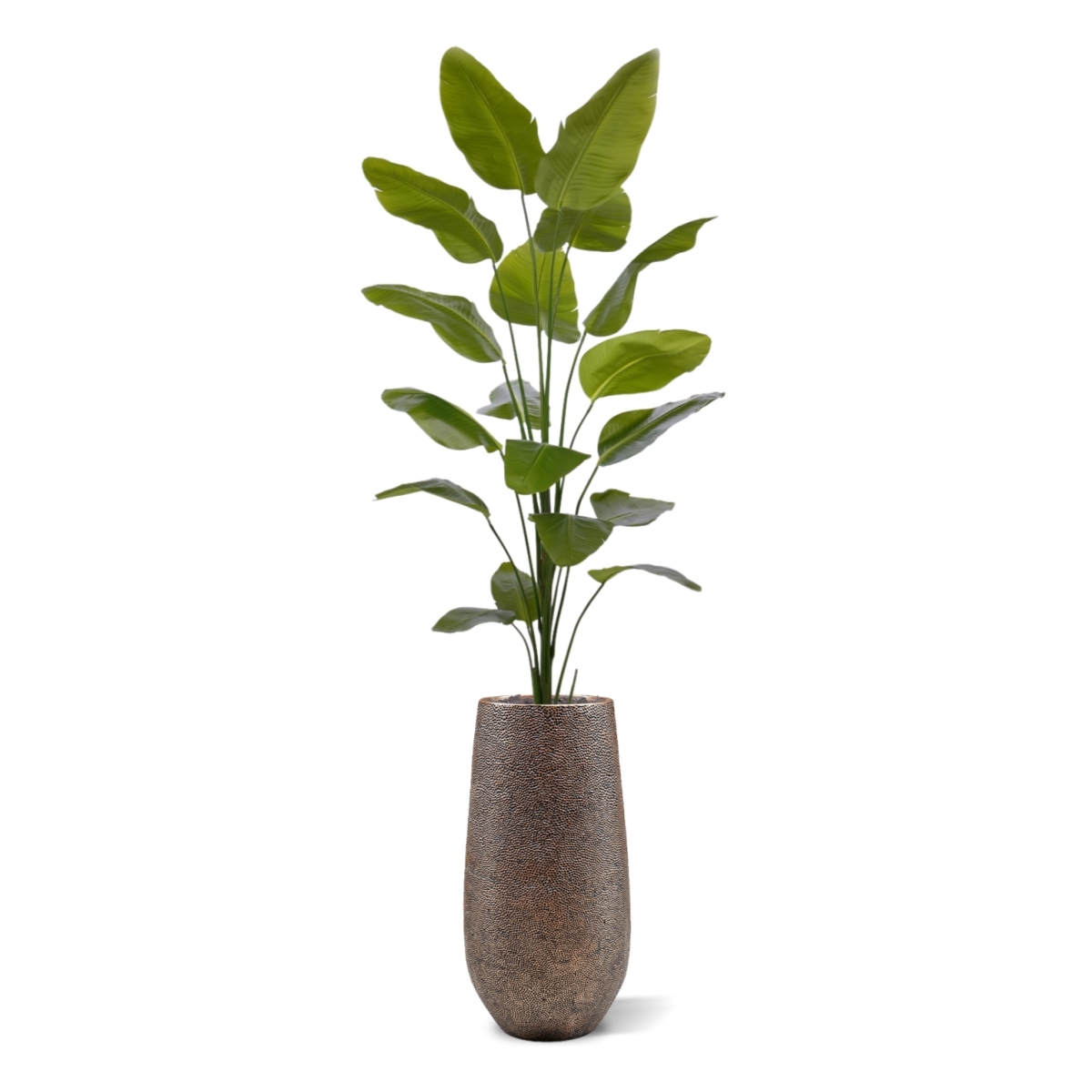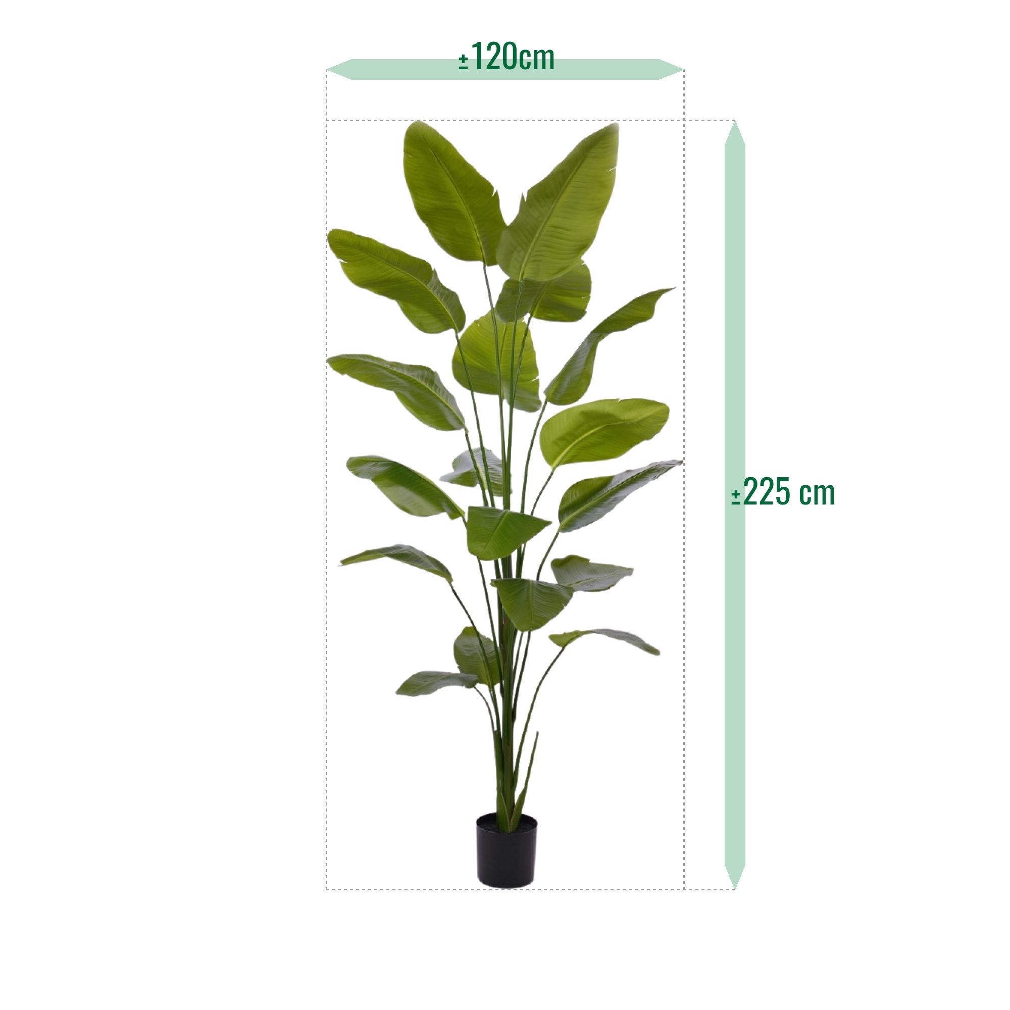 La pianta artificiale Strelitzia Nicolai porta senza sforzo il fascino esotico del Sudafrica nel vostro spazio vitale. Godetevi il suo verde lussureggiante e l'impressionante altezza di 225 cm, completata da 18 bellissime foglie di seta artificiali. Facile da montare, è ideale sia per il soggiorno che per l'ufficio. Questa maestosa pianta aggiunge un tocco di bellezza tropicale a qualsiasi spazio, perfetto per un'atmosfera rilassata e bohémien o per le vibrazioni della giungla. Abbinatela alla nostra selezione di vasi ornamentali per un tocco di stile in più.